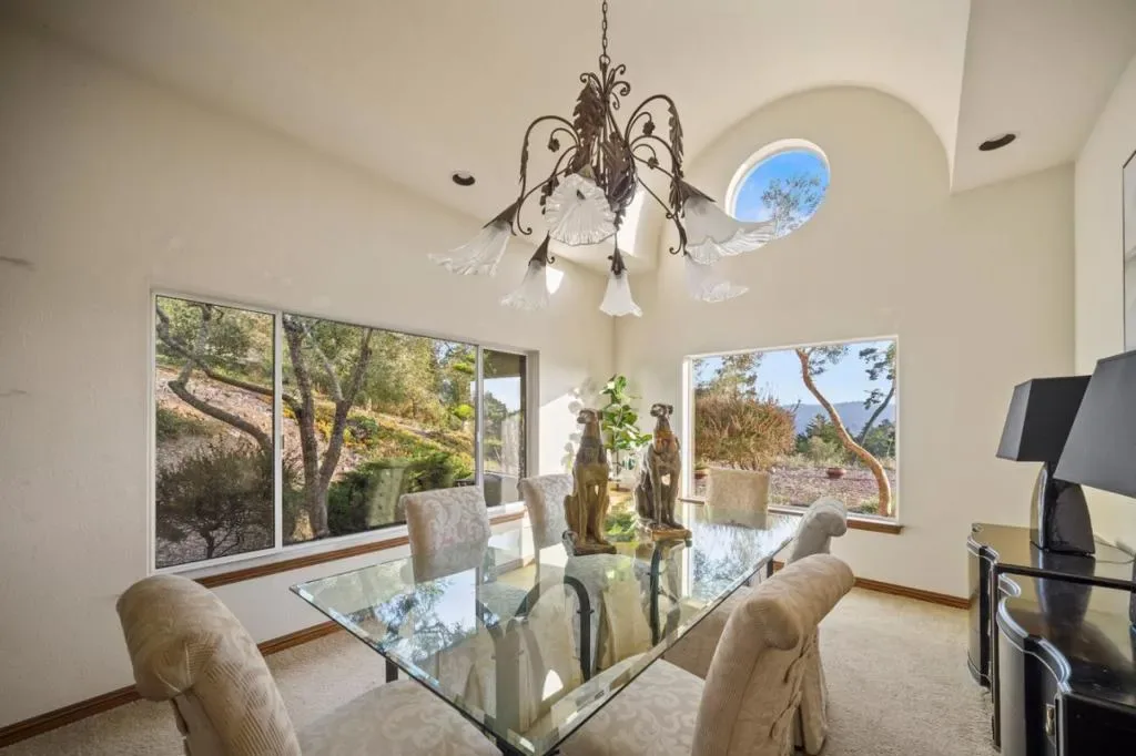 $510,000 Reduced! $644/ft By far the lowest priced home in Carmel! Watch 2 Videos & 3D Tour. Tucked within the prestigious enclave of Rancho Mar Monte this custom-built Spanish Mediterranean estate offers exceptional privacy just five minutes from the beaches, dining, and boutiques of Carmel-by-the-Sea. Set on approximately 1.3 acres, the residence spans 4,631 square feet of open-concept living with sweeping valley views from most rooms. The five-bedroom, four-bathroom layout balances spacious entertaining areas with comfortable everyday living. Architectural details include Spanish tile, handcrafted mahogany doors, soaring ceilings, and bay windows that fill the home with natural light. Fireplaces anchor the formal living room, family room, and primary suite. The gourmet kitchen is designed for entertaining and daily life, featuring high-end appliances, a butcher-block island, and a large chefs pantry. A formal dining room, breakfast nook, and breakfast bar offer multiple dining options. The expansive primary suite enjoys valley views, a fireplace, and a spa-style bath with jetted tub, separate shower, and an additional fireplace. With generous outdoor space, rare privacy near town, and classic Mediterranean craftsmanship, quiet, private, and minutes from the coast.