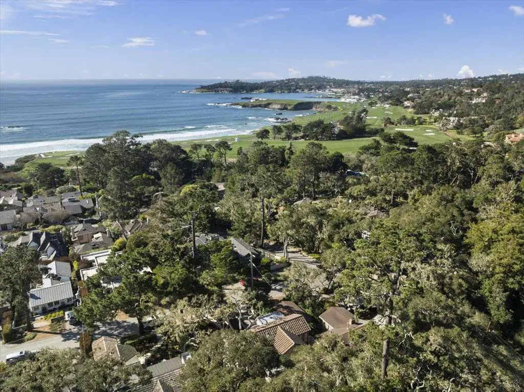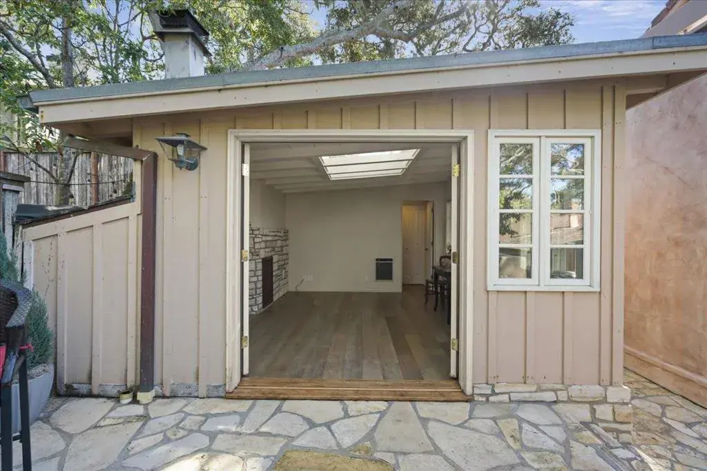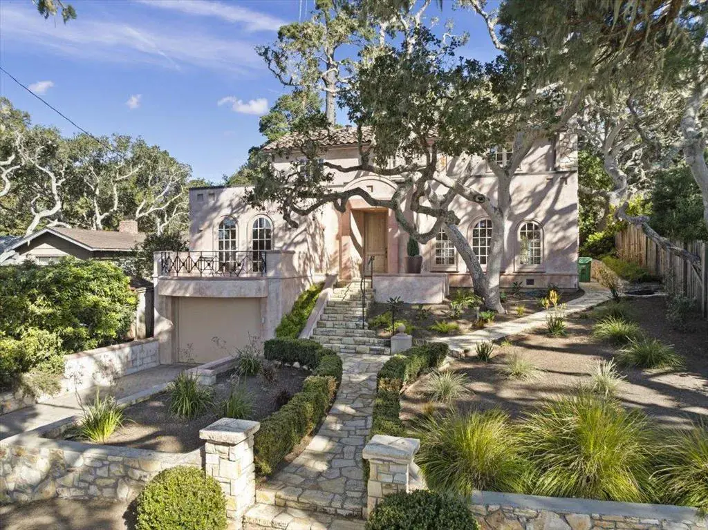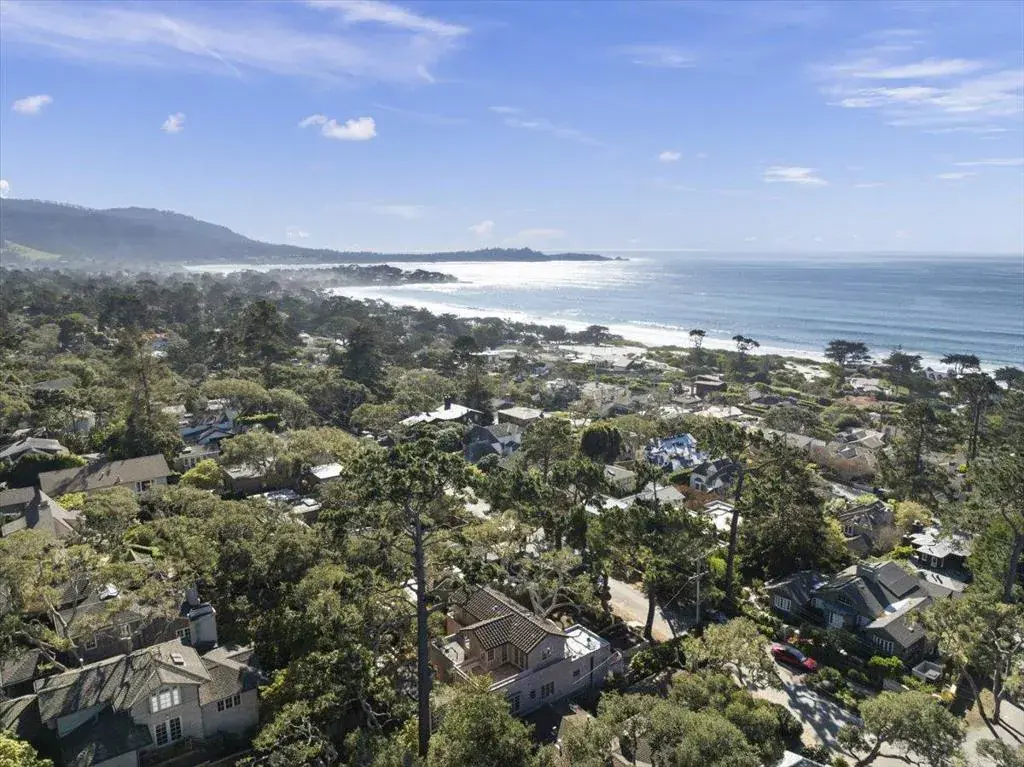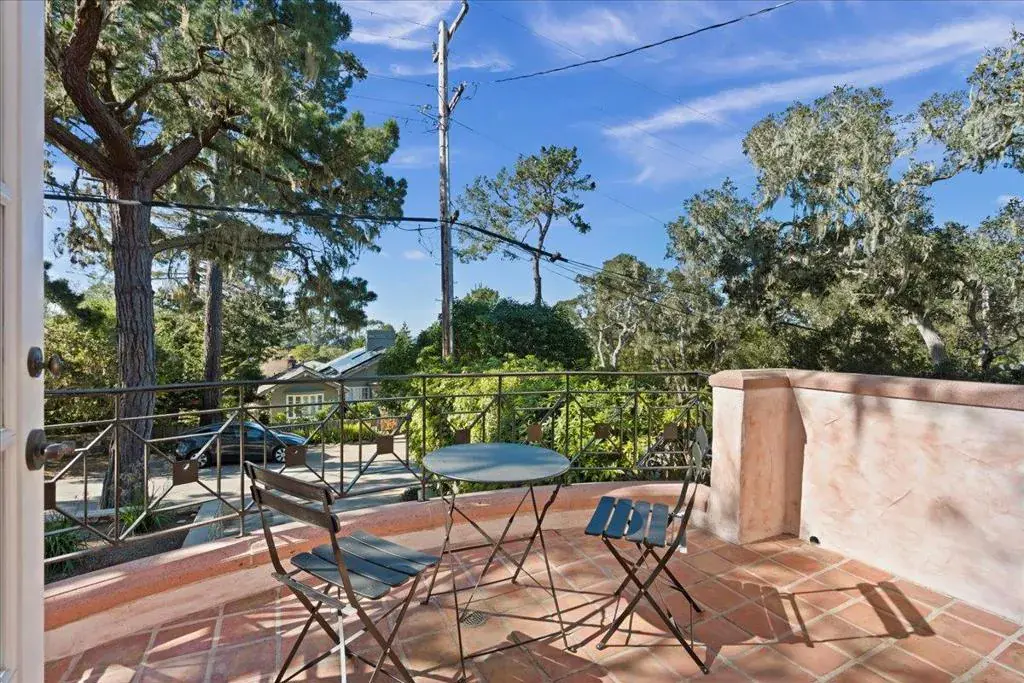 Ocean views and the sound of the waves 2 blocks from Carmel Beach. This quaint Mediterranean home is available for the first time ever. Warm hardwood floors flow from the entry to the living room, where you have ocean views and a magnificent Carmel Sand Stone fireplace with custom built-in cabinetry. Open the French doors of a light filled dining room, to enjoy 2 private patios for outdoor entertaining. Sit on your balcony off the primary bedroom for morning coffee with a view. This primary bedroom sits on the main floor, with ensuite jacuzzi tub, separate shower, walk in closets. A separate 275 sq ft guest studio with bathroom & fireplace, is connected by a stone patio. The original owner who painted here was one of Carmel’s famous early California Plein Air artists. Kitchen includes granite counters, Subzero refrigerator, gas appliances plus a warmer oven. Built in kitchen hutch holds all your dishes & glassware in style. Very close to Pebble Beach gate. This home is a one of a kind gem for Carmel living.