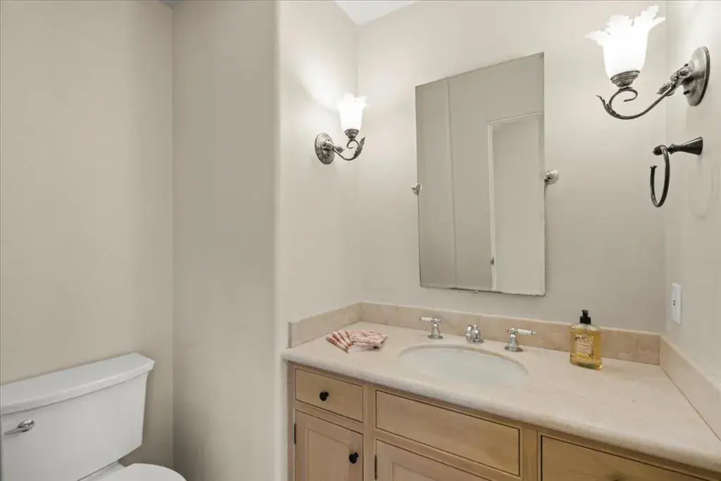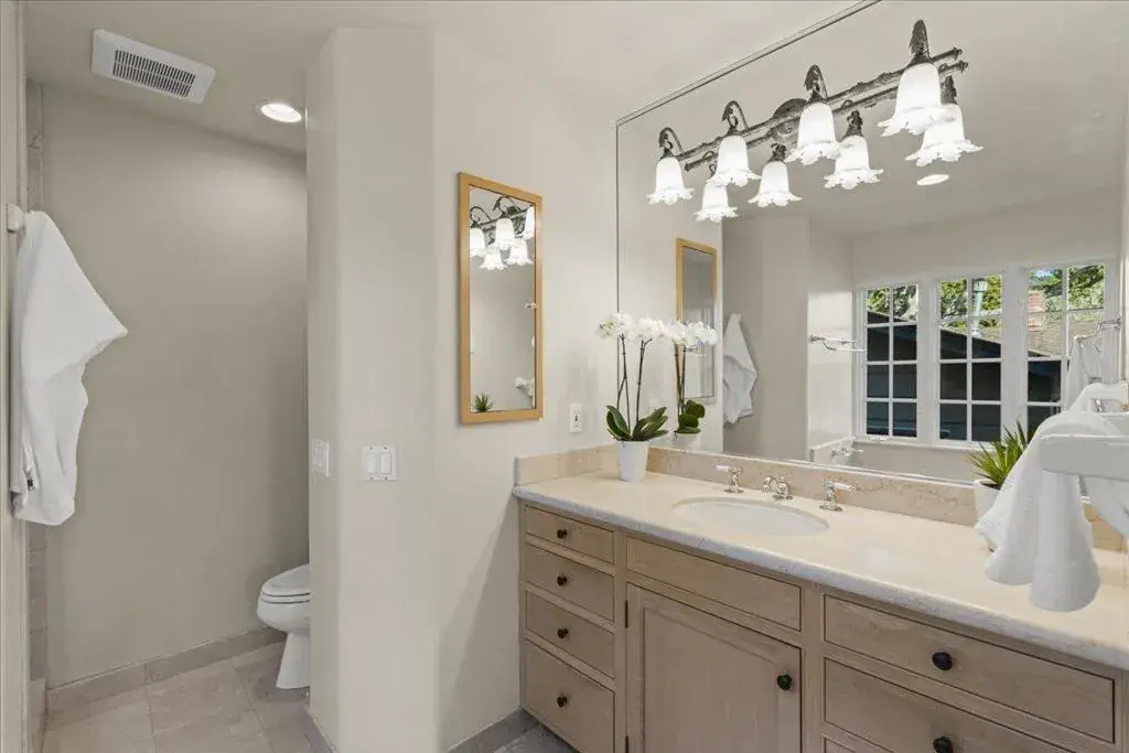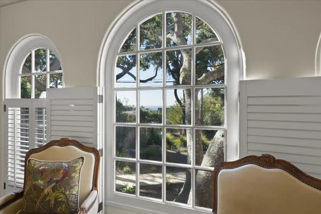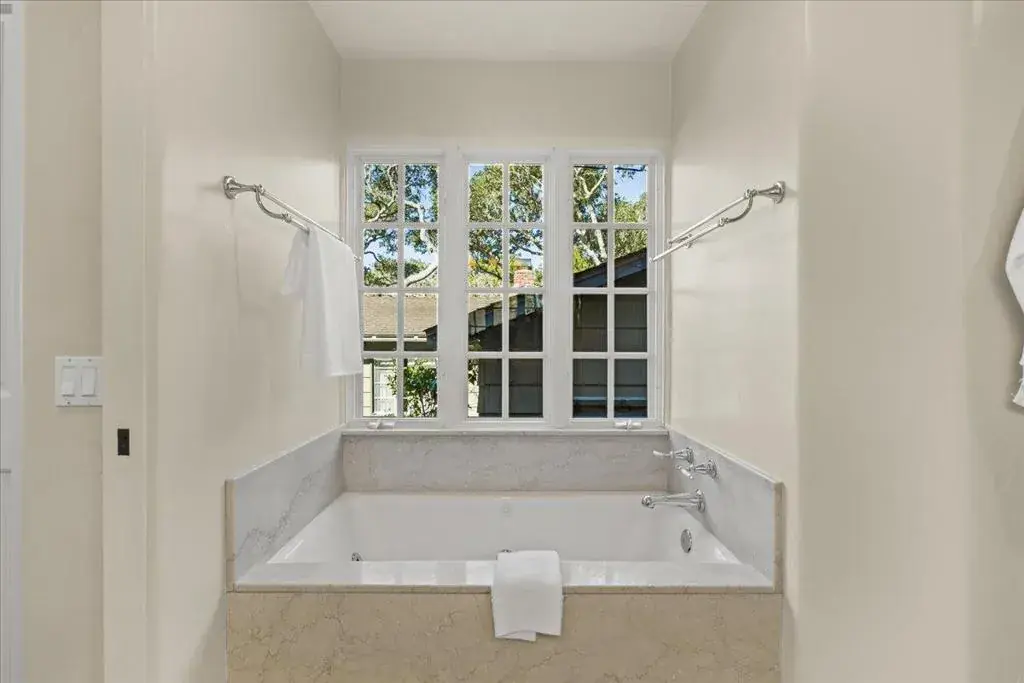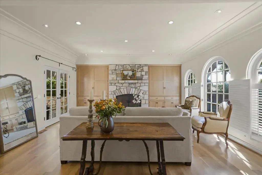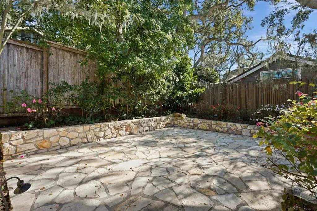 Ocean views and the sound of the waves 2 blocks from Carmel Beach. This quaint Mediterranean home is available for the first time ever. Warm hardwood floors flow from the entry to the living room, where you have ocean views and a magnificent Carmel Sand Stone fireplace with custom built-in cabinetry. Open the French doors of a light filled dining room, to enjoy 2 private patios for outdoor entertaining. Sit on your balcony off the primary bedroom for morning coffee with a view. This primary bedroom sits on the main floor, with ensuite jacuzzi tub, separate shower, walk in closets. A separate 275 sq ft guest studio with bathroom & fireplace, is connected by a stone patio. The original owner who painted here was one of Carmel’s famous early California Plein Air artists. Kitchen includes granite counters, Subzero refrigerator, gas appliances plus a warmer oven. Built in kitchen hutch holds all your dishes & glassware in style. Very close to Pebble Beach gate. This home is a one of a kind gem for Carmel living.