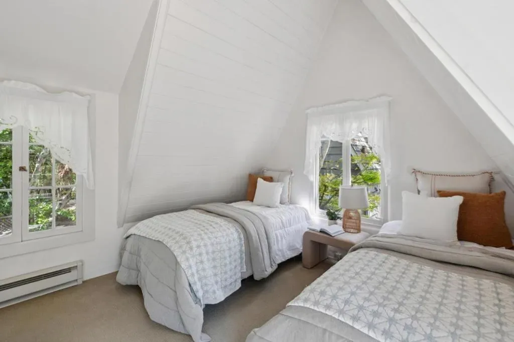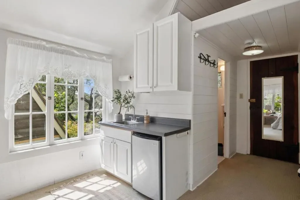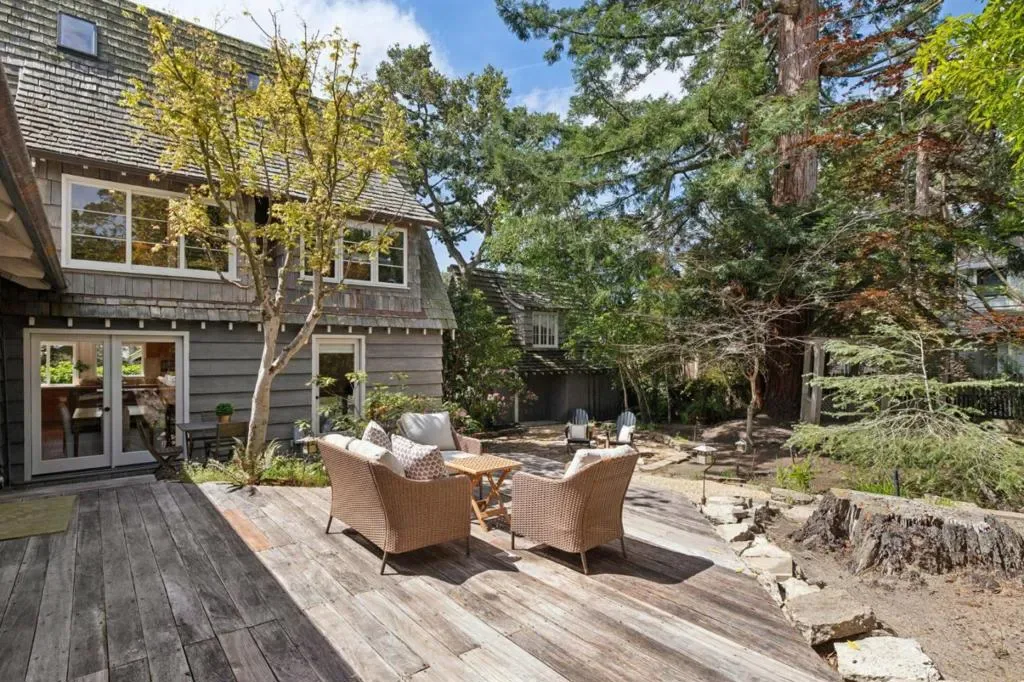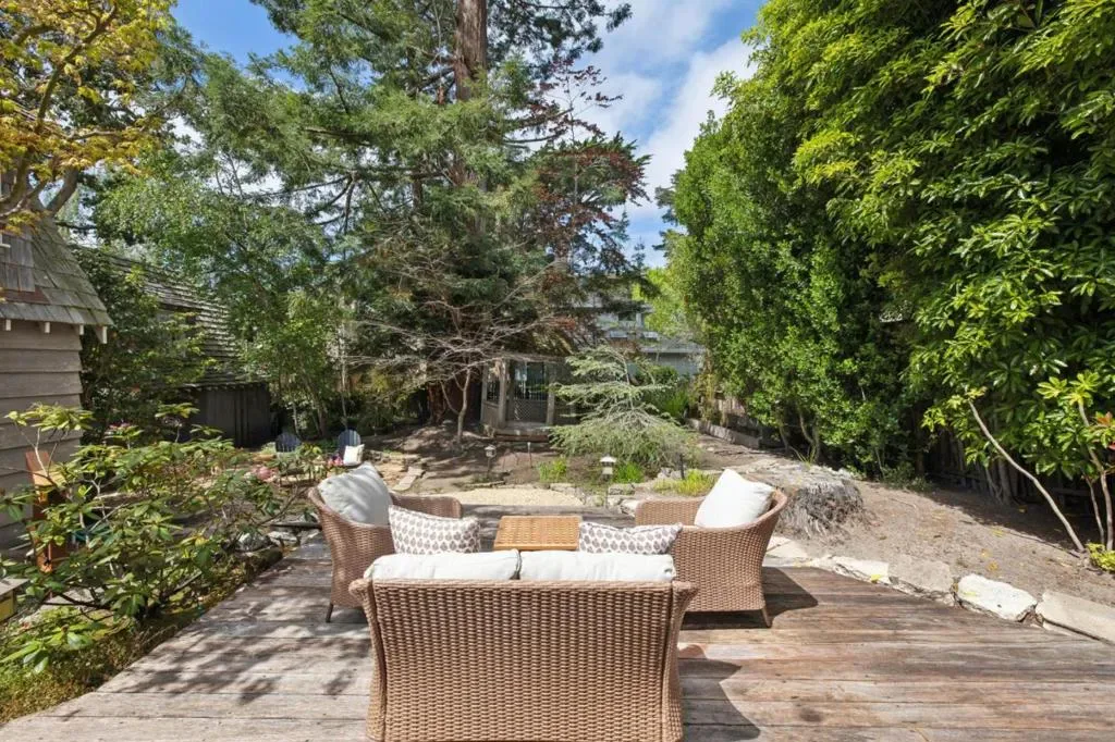 Once upon a time, along a quiet lane just a short stroll from the village’s lively shops and welcoming eateries, stands a storybook cottage drawn from the pages of a faerie tale. Built in 1946, this enchanting home rises with steeply pitched roofs and original redwood siding. Its timeless character unfolds across more than 2,400 SF, resting upon nearly a double parcel where mature trees whisper and sunlight dances across the ground. Within are 4 bedrooms and 3.5 baths, each space filled with quiet magic. Inside, open-beamed ceilings stretch above like the rafters of an old woodland hall, while cozy nooks invite moments of rest, reflection, and imagination. At the heart lies a thoughtfully updated kitchen fit for a master of feasts featuring Wolf, Sub-Zero, and Bosch appliances, along with a Miele washer & dryer, blending modern ease with old-world charm. Every corner tells a story: laughter by the hearth, soft mornings in golden light, and evenings where the world feels far away, though the town is only steps beyond your door. Outside, the grounds offer space to wander, gather, and dream beneath the trees. The generous lot provides rare privacy in a coveted setting. This is no ordinary home, but a place where past and present meet, and where a new chapter quietly awaits.