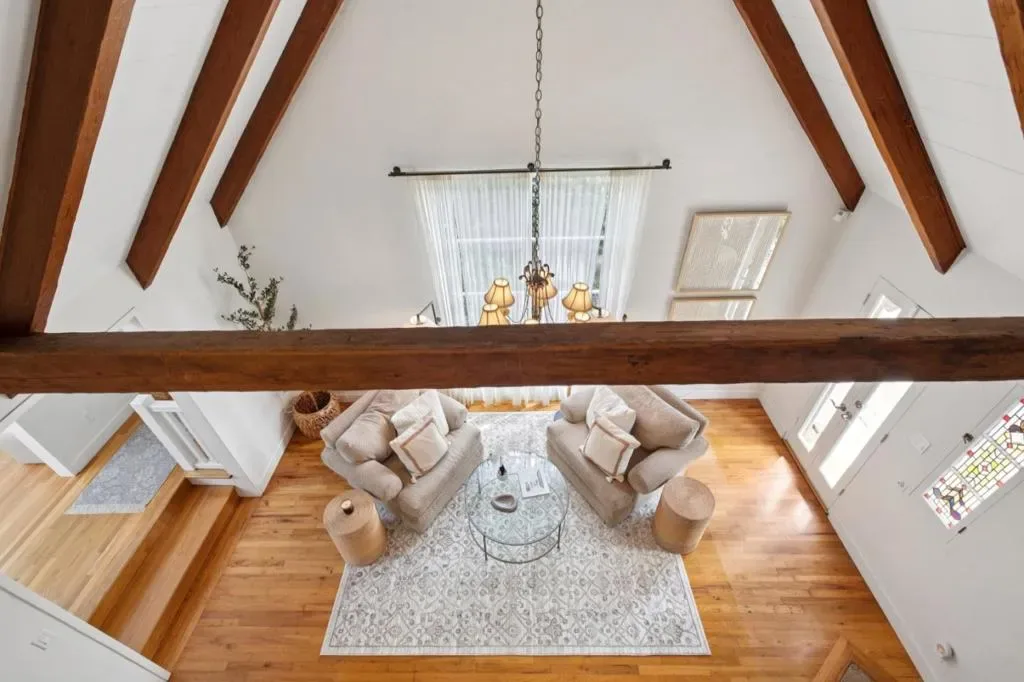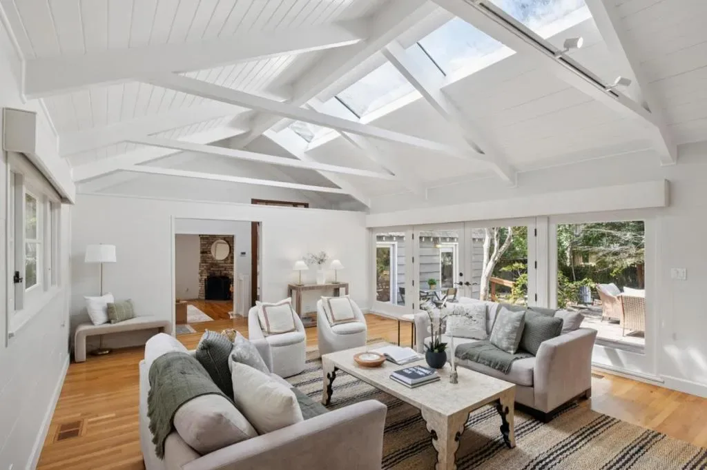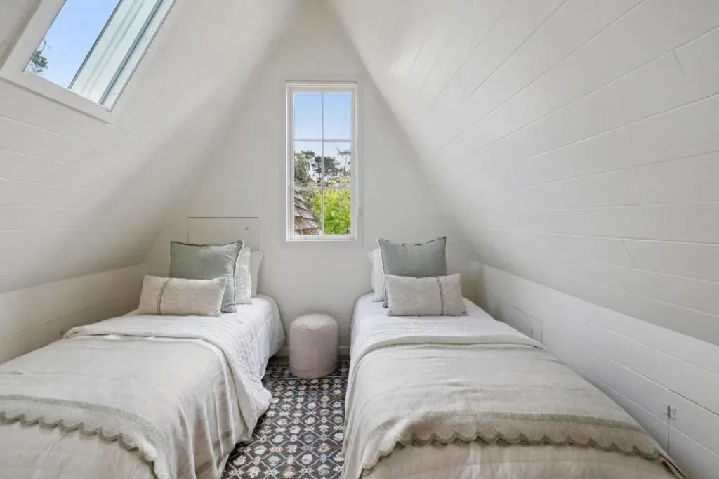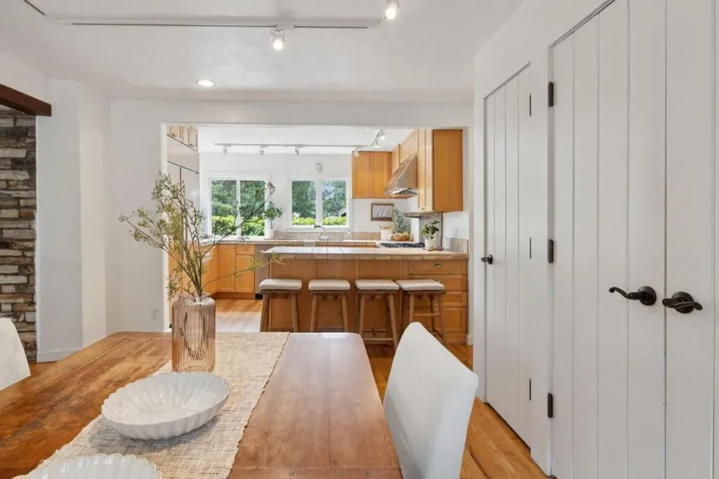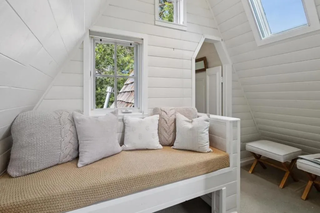 Once upon a time, along a quiet lane just a short stroll from the village’s lively shops and welcoming eateries, stands a storybook cottage drawn from the pages of a faerie tale. Built in 1946, this enchanting home rises with steeply pitched roofs and original redwood siding. Its timeless character unfolds across more than 2,400 SF, resting upon nearly a double parcel where mature trees whisper and sunlight dances across the ground. Within are 4 bedrooms and 3.5 baths, each space filled with quiet magic. Inside, open-beamed ceilings stretch above like the rafters of an old woodland hall, while cozy nooks invite moments of rest, reflection, and imagination. At the heart lies a thoughtfully updated kitchen fit for a master of feasts featuring Wolf, Sub-Zero, and Bosch appliances, along with a Miele washer & dryer, blending modern ease with old-world charm. Every corner tells a story: laughter by the hearth, soft mornings in golden light, and evenings where the world feels far away, though the town is only steps beyond your door. Outside, the grounds offer space to wander, gather, and dream beneath the trees. The generous lot provides rare privacy in a coveted setting. This is no ordinary home, but a place where past and present meet, and where a new chapter quietly awaits.