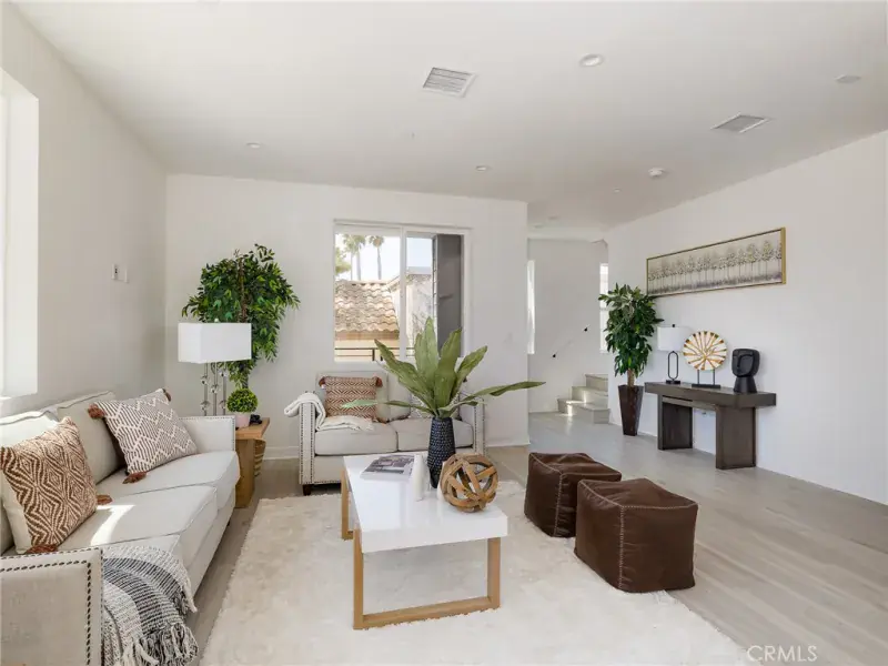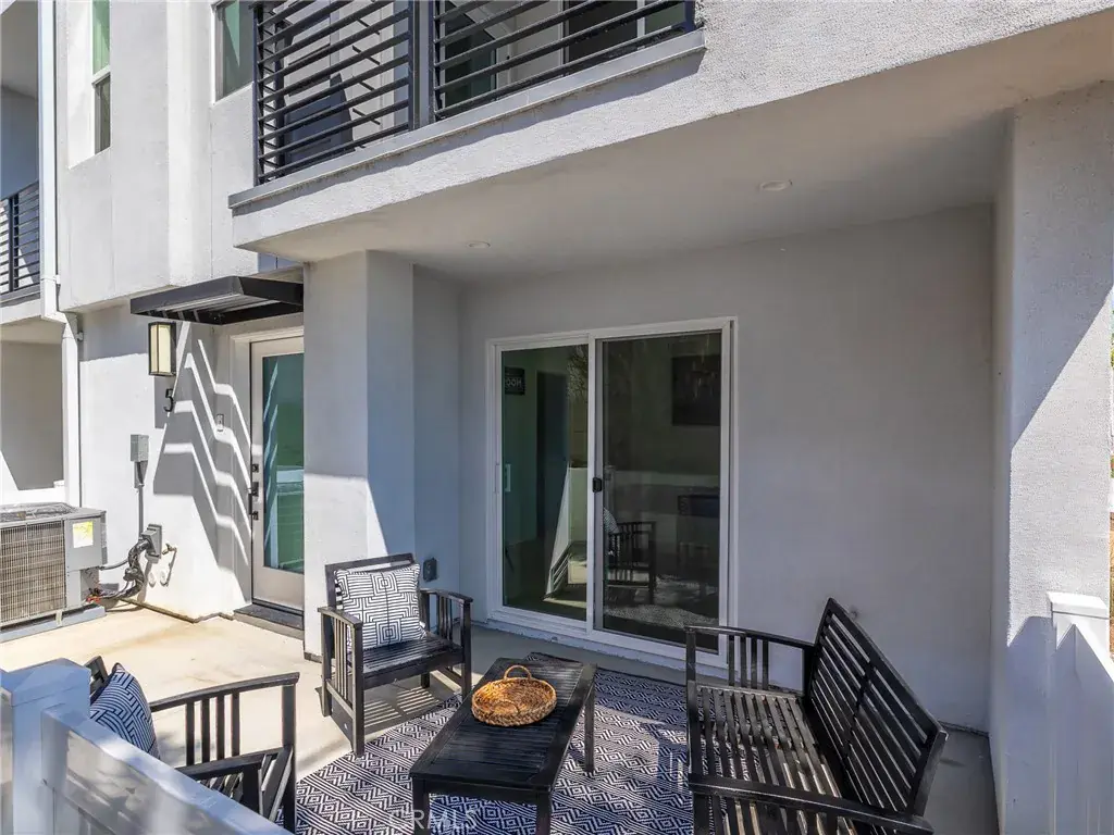The interiors are outfitted with professional-grade kitchens featuring 36″ ranges, stainless steel appliances, sleek cabinetry, in-unit washer and dryer hookups, designer-selected finishes, and central air conditioning throughout. Each home also includes a private patio, off-street guest parking, and access through a gated pedestrian entry for added security and peace of mind.
