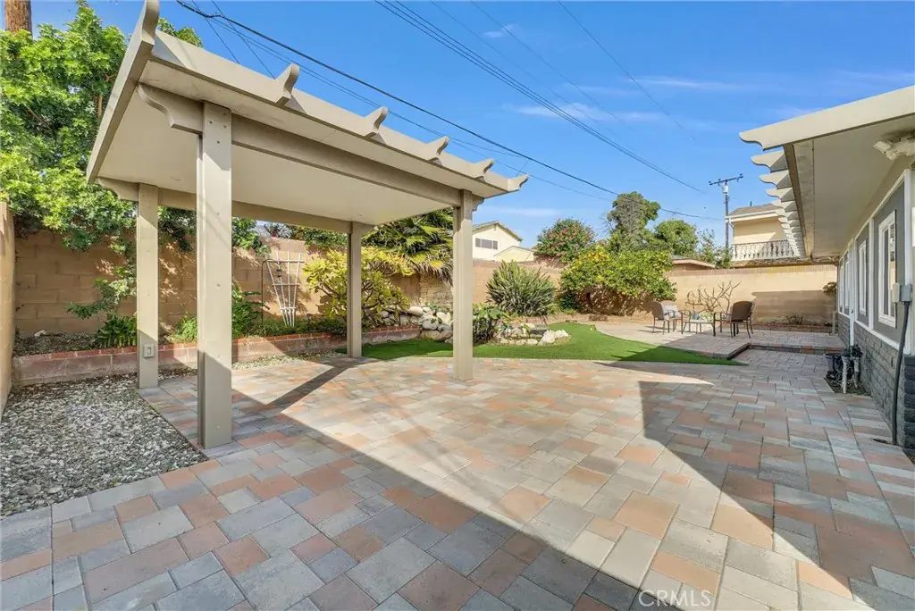 Stunning two-story home showcasing impeccable curb appeal and paid-off solar panels for energy efficiency and long-term savings. The beautifully designed exterior features paver stone driveway, low-maintenance turf landscaping, and a secure front entry with a security door and elegant double-door entrance. Step inside to an exceptionally spacious first floor with an open and versatile layout, perfect for both everyday living and entertaining. The main level includes a welcoming living room with a cozy gas fireplace, a dining area, and a large family room complete with a huge wet bar—ideal for gatherings or easily convertible into a 4th bedroom. Adding even more living space is a massive 443 sq ft sunroom, offering endless possibilities for relaxation, entertaining, or a home office. The gourmet kitchen is a standout, featuring stylish gray cabinetry with ample storage, sleek quartz countertops, a glass mosaic backsplash, electric stove, and a Bosch dishwasher. Throughout the living spaces, enjoy luxury vinyl plank flooring, recessed lighting, and dual-pane windows that enhance comfort and natural light. Upstairs, you’ll find three generously sized bedrooms, including a spacious primary suite with a large closet area and a dedicated makeup vanity. The secondary bedrooms offer ample space and mirrored closet doors for added functionality and style. The backyard is a true private oasis, complete with pavers, turf grass, a mature lemon tree, and a tranquil pond that creates a serene atmosphere. A charming gazebo provides the perfect spot for outdoor entertaining, while a large Suncast shed offers convenient additional storage. The property is fully enclosed with brick walls, providing excellent privacy, security, and sound insulation. Additional highlights include a direct-access two-car garage, central A/C and heating, upgraded electrical panel, newer roof in 2017, rain gutters, Nest thermostat, and an ADT alarm system. Located in a wonderful neighborhood and centrally located between the 405, 91, and 710 freeways. This home truly offers exceptional space, thoughtful upgrades, and comfort throughout—an opportunity you don’t want to miss.