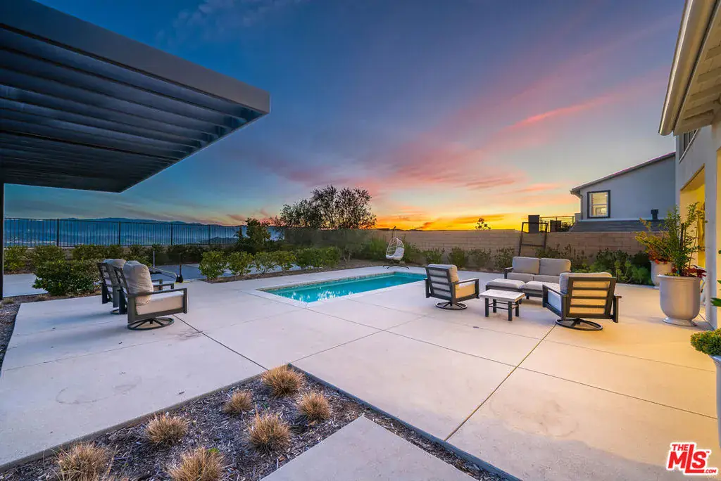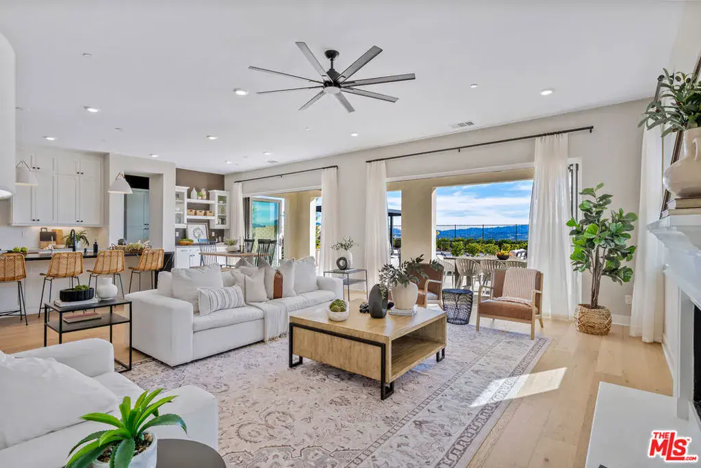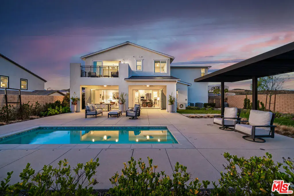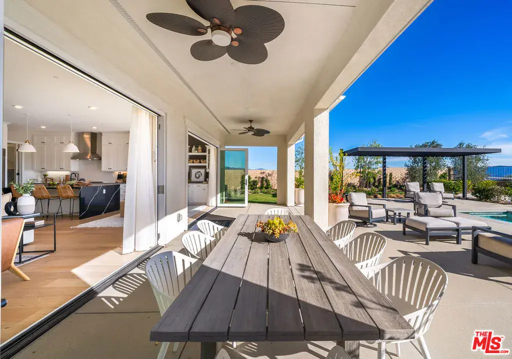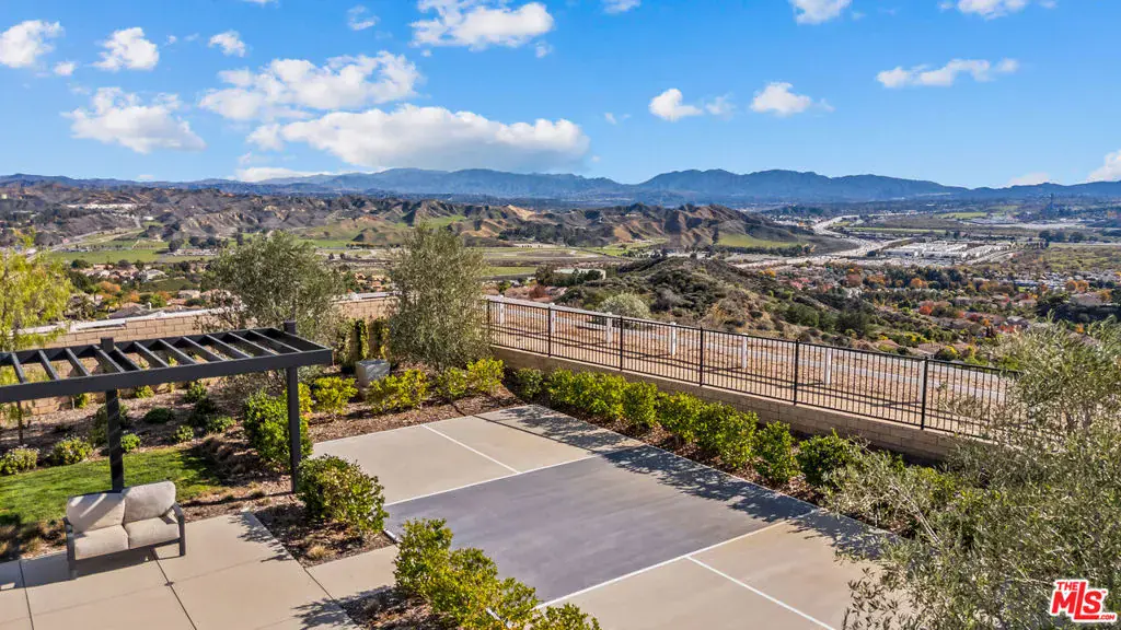 Welcome to your TURNKEY DREAM HOME, located in one of Southern California’s most highly anticipated master-planned communities. This former model home boasts premium designer upgrades and contemporary elegance throughout, representing the absolute pinnacle of what the Williams Ranch community has to offer. Perfectly positioned on a corner end lot with breathtaking mountain and city views from nearly every room, this exceptional 6-bedroom, 6-bathroom home effortlessly blends modern sophistication, versatility, and relaxed, everyday livability. This stunning property is a fully energy-independent showcase, crowned by a sleek, OWNED Tesla Solar Roof tile system (1 of only 6 homes in the development) paired with Powerwall backup batteriesdelivering near-zero energy bills PLUS uninterrupted power during outages, offering the ultimate peace of mind in sustainable luxury. The open-concept living areas flow effortlessly to your very own private resort-style backyard featuring a covered California room with ceiling fans and mood lighting, sparkling pool, dedicated pickleball/sport court, and a cantilevered steel pergola providing plenty of shade. Enjoy rich hardwood flooring, tri-fold glass doors, designer lighting, and built-in closet organizers. Every bathroom is upgraded with Moen bathroom fixtures and hand-laid tiles. Retreat to the luxurious primary suite with a private balcony and an oversized walk-in closet. The spa-like ensuite bath features dual vanities, an oversized walk-in shower, soaking tub, and artisan stone detailing. At the heart of the home, the chef’s kitchen dazzles with a dramatic waterfall-edge island, premium stainless steel appliances, soft-close shaker cabinetry, a spacious walk-in pantry, and custom coffee bar. RARE fully appointed ADU with private entrance, complete kitchen, in-unit laundry, walk-in closet, bedroom + bathroom — perfect for extended family, guests, or rental income. You’ll also love the 4-car epoxy-finished garage with an extended driveway providing abundant parking for all of your vehicles and toys. Additional everyday luxuries include a drop-zone mudroom, built-in-wall pest defense system, and full smart-home integration compatible with Alexa. Don’t miss this rare opportunity to own a move-in ready, resort-inspired home that blends cutting-edge design with timeless luxury, giving you effortless everyday living!