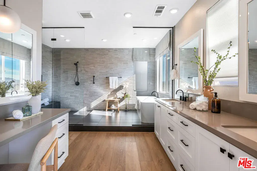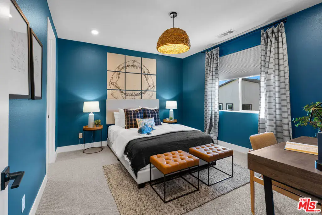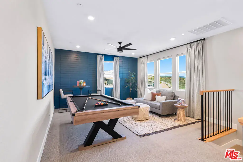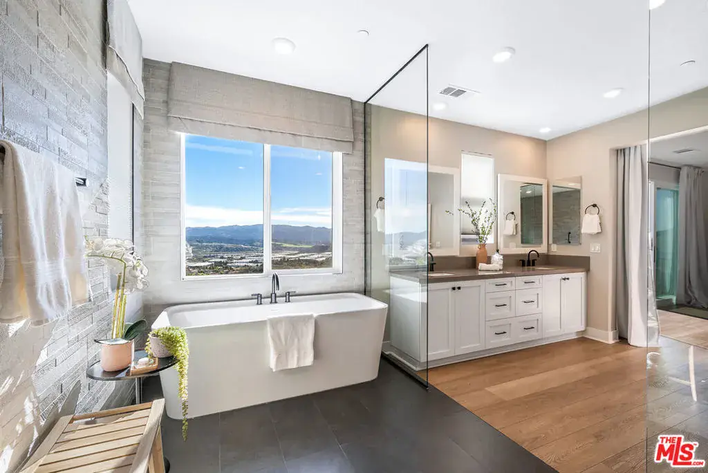 Welcome to your TURNKEY DREAM HOME, located in one of Southern California’s most highly anticipated master-planned communities. This former model home boasts premium designer upgrades and contemporary elegance throughout, representing the absolute pinnacle of what the Williams Ranch community has to offer. Perfectly positioned on a corner end lot with breathtaking mountain and city views from nearly every room, this exceptional 6-bedroom, 6-bathroom home effortlessly blends modern sophistication, versatility, and relaxed, everyday livability. This stunning property is a fully energy-independent showcase, crowned by a sleek, OWNED Tesla Solar Roof tile system (1 of only 6 homes in the development) paired with Powerwall backup batteriesdelivering near-zero energy bills PLUS uninterrupted power during outages, offering the ultimate peace of mind in sustainable luxury. The open-concept living areas flow effortlessly to your very own private resort-style backyard featuring a covered California room with ceiling fans and mood lighting, sparkling pool, dedicated pickleball/sport court, and a cantilevered steel pergola providing plenty of shade. Enjoy rich hardwood flooring, tri-fold glass doors, designer lighting, and built-in closet organizers. Every bathroom is upgraded with Moen bathroom fixtures and hand-laid tiles. Retreat to the luxurious primary suite with a private balcony and an oversized walk-in closet. The spa-like ensuite bath features dual vanities, an oversized walk-in shower, soaking tub, and artisan stone detailing. At the heart of the home, the chef’s kitchen dazzles with a dramatic waterfall-edge island, premium stainless steel appliances, soft-close shaker cabinetry, a spacious walk-in pantry, and custom coffee bar. RARE fully appointed ADU with private entrance, complete kitchen, in-unit laundry, walk-in closet, bedroom + bathroom — perfect for extended family, guests, or rental income. You’ll also love the 4-car epoxy-finished garage with an extended driveway providing abundant parking for all of your vehicles and toys. Additional everyday luxuries include a drop-zone mudroom, built-in-wall pest defense system, and full smart-home integration compatible with Alexa. Don’t miss this rare opportunity to own a move-in ready, resort-inspired home that blends cutting-edge design with timeless luxury, giving you effortless everyday living!