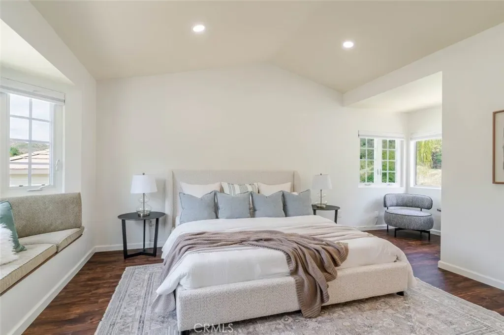 Floor-to-ceiling sliding glass doors open up to a spectacular resort-style backyard, designed and built by the original owners. This private outdoor oasis includes a built-in BBQ, covered patio, fire pit, and outdoor furniture included, making it perfect for relaxing or hosting guests year-round. The sparkling pool completes the space, creating the ultimate California lifestyle experience.