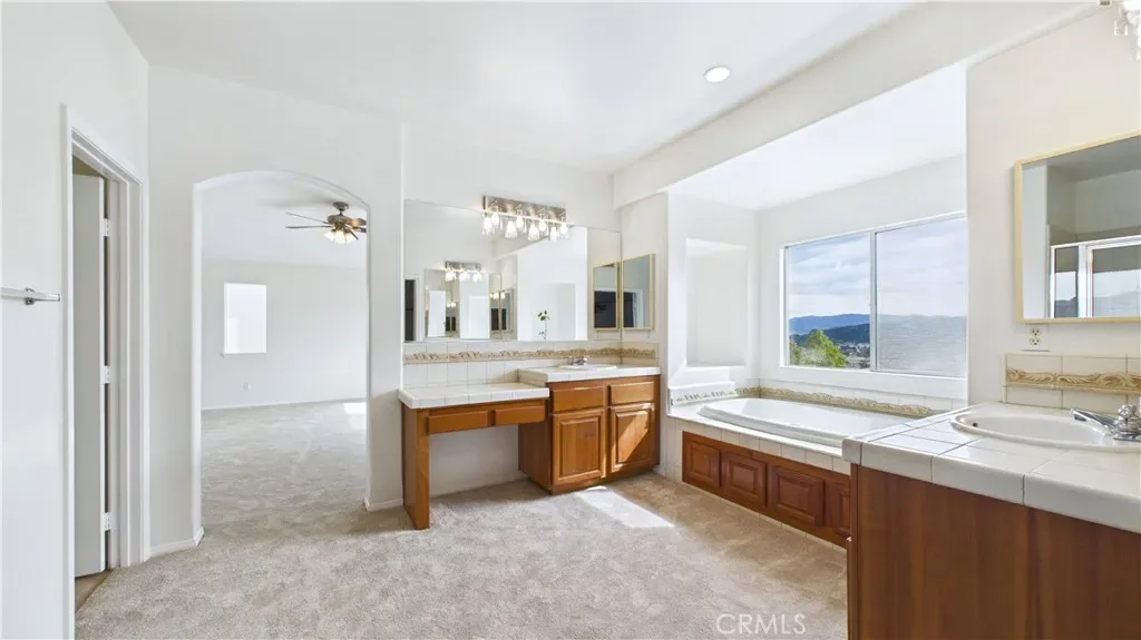 Nestled atop the desirable Northlake community, just moments away from Castaic Lake, this home has it all! Stepping inside you’ll find a contemporary floor plan boasting soaring ceilings and ample natural light, freshly updated with fresh paint and brand new carpet throughout. The first floor, adorned with beautiful hardwood flooring, features spacious family, living, and dining rooms, as well as a downstairs bedroom and bathroom, complete with step-in shower. The second floor plays host to five more bedrooms, including the enormous primary suite complete with huge walk in closet, a spacious study, and access to a balcony that affords sweeping views. Stepping out back, you will find a sparkling, modern pool and spa. Completing this stunning home’s list of amenities is a three car garage (one two car bay and one single car bay), and phenomenal energy savings thanks to *owned* solar!