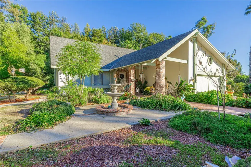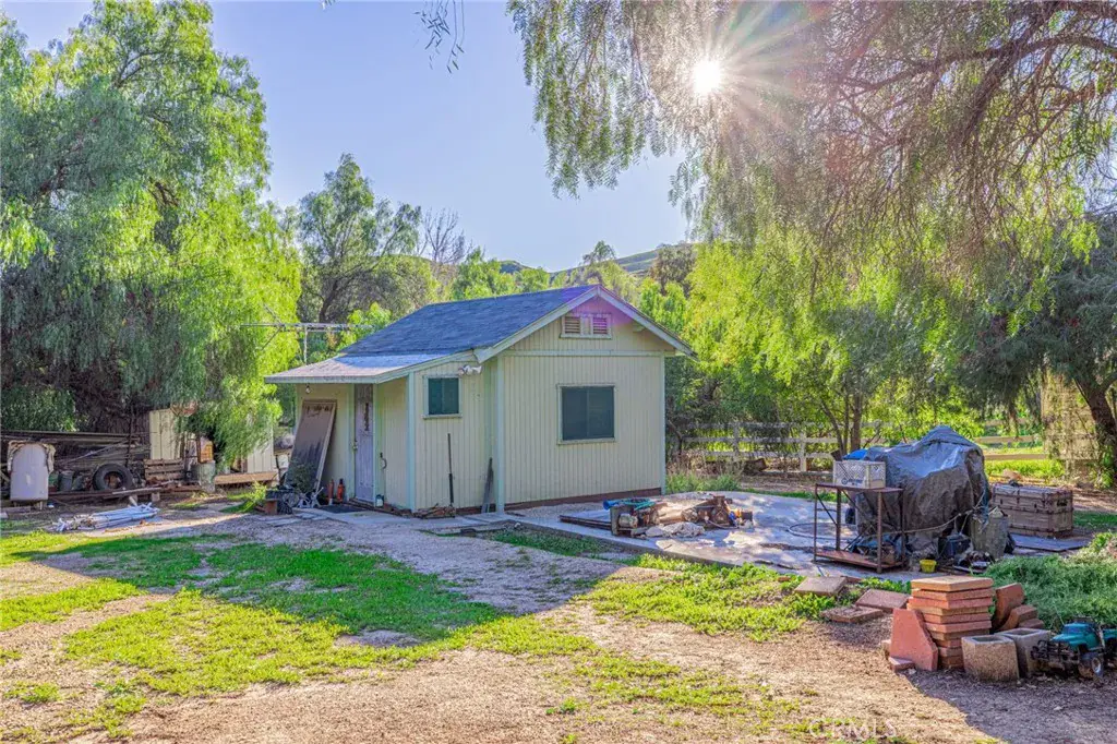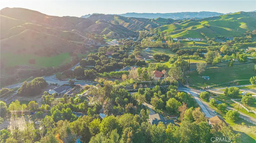 Set on approximately 2.1 acres in the heart of the highly desirable Hasley Canyon, this custom home offers space, privacy, and a rare balance of rural living with everyday convenience. Just minutes from the freeway along the scenic drive with views of hillsides, neighboring ranches and equestrian properties. The tree-lined property welcomes you with a long private driveway leading to the main residence, surrounded by mature trees, sculpted topiaries and fruit trees. The 2,600+/- sq ft home offers 4 bedrooms, 3 full bathrooms and 2-car garage. The foyer opens to the formal living room featuring a white oak vaulted ceiling and formal dining area. The kitchen retains its original white oak cabinetry with a cozy breakfast nook and a wet bar accented by leaded glass doors just off the kitchen. The main level also includes a den with fireplace, a bedroom, and a full bathroom. Upstairs, the primary bedroom features an ensuite bath, fireplace, and walk-in closet. Two additional bedrooms and a hall bathroom complete the upper level.
