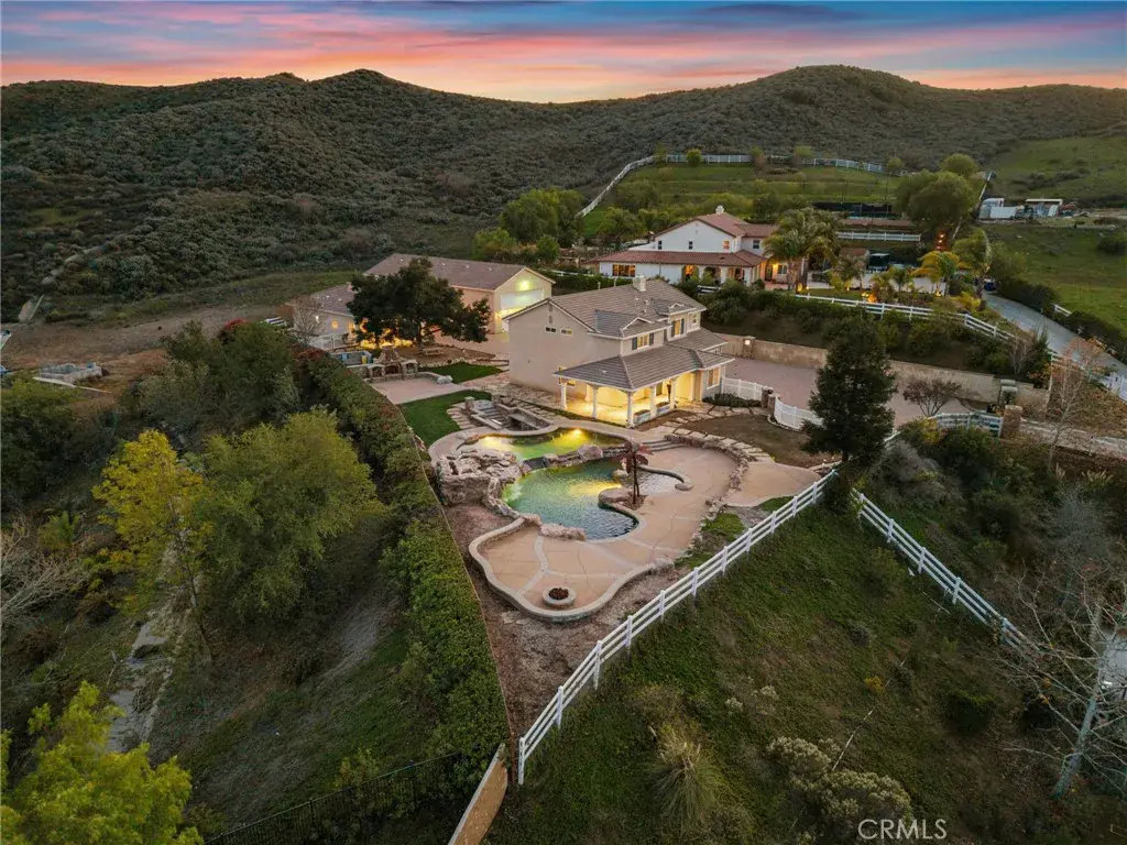 You could search for years before finding a property like this – a gated home on almost an acre with a 3,000 square foot workshop AND permitted Guest House! Perched high above the Hasley Hills with spectacular views and privacy sits a home truly like no other. With so much land to work with, the owner created a gated compound with features rarely found anywhere. An 800 sqft single story guest house with kitchen, living room and high ceilings. Completely detached from the main house. Next to the guest house is a double workshop/garage (75 by 35 and 35 by 30) with 16 foot tall doors and capable of housing virtually any RV, boat, or classic car collection. There is literally room for up to 14 cars and it’s built right with R30 insulation, plenty of lighting, 220 electrical and easy access in and out. Truly well done! As soon as you pass through the gates onto the massive stone driveway that leads from the front all the way to the back of the property where the workshop is, you know this property is special. The guest house has 10 foot ceilings, 3 foot wide doors, kitchen, fireplace and walk-in closet with good storage throughout. Perfect for parents or guests, as there are no stairs and access is seamless. The huge pebble tech pool and sunken BBQ cook station with Viking appliances means parties for 200 aren’t a problem and the firepit and fireplace offer separate conversation areas, all with amazing views as the home sits high above the downslope neighbors. The main house is plenty big with an expanded family room in lieu of the 3-car tandem garage (you don’t need it with the massive workshop!) full bedroom with private bath downstairs, 4 more bedrooms up and another 3 full baths. 4.5 baths in the main house and a full bath in the guest house so lots of living flexibility. No Mello Roos or high HOA fees in this well maintained, planned community. An amazing setting with views forever and incredible property to go with it. What a home!!