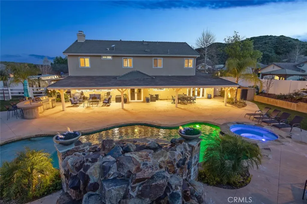 The highly esteemed Hasley Estates is known to Santa Clarita locals as one of the area’s hidden gems! Just minutes to Valencia Town Center, this serene bedroom Community of A22 zoned horse property features sprawling estates on expansive lots with privacy, RV parking, ADU and workshop friendly living! 30177 Sagecrest Way boasts amenities the most discerning home buyers seek and more! Centered on a nearly 3/4 acre corner lot with privacy vinyl fencing, beautiful landscaping, breathtaking POOL with dramatic stone waterfall, resort like SPA, 4-CAR GARAGE, covered dog run, tons of grass area to enjoy, huge solid covered patio with wall mounted TV, built in BBQ, fruit trees, FULL SIZE GATED RV PARKING complete with 220v connections and sewer clean out! This is where serene neighborhood charm meets elevated resort-style living, all framed by exceptional curb appeal that reflects true pride of ownership. Step inside to discover timeless features such as wide plank flooring and custom stained hardwood finishes that emanate warmth and sophistication! The elegant and inviting formal living room flows seamlessly into the heart of the home, a beautifully designed chef’s kitchen complete with stunning granite countertops, convenient center island, upgraded stainless steel appliances, designer backsplash and custom built-in bar with wine fridge and refined finishes, creating the perfect setting for effortless entertaining while looking out to the stunning waterfall through dual french doors! The adjacent family room, adorned with lovely hearth and gas fireplace offers a comfortable gathering space for everyday living! The convenient indoor laundry is located on the main level along with a FULL DOWNSTAIRS BEDROOM And BATH ideal for guests or multigenerational living. Upstairs, 5 additional private bedrooms offer generous space, namely the expansive primary suite complete with walk-in closet with custom built ins and spa-like bathroom, seated vanity, soaking tub plus separate shower and overlooks tranquil hillside views! The 4 additional upstairs bedrooms offer 2 en suite bed/baths and 2 more share the lovely hall bath all with timeless finishes and upgraded flooring! This home also is energy efficient with solar panels! For those with an adventurous spirit, the property includes RV parking & abundant space for storing your boat, jet skis, or ATVs, perfect for weekends at nearby Castaic Lake or Pyramid Lake! This is a home & a lifestyle you will enjoy for years to come!