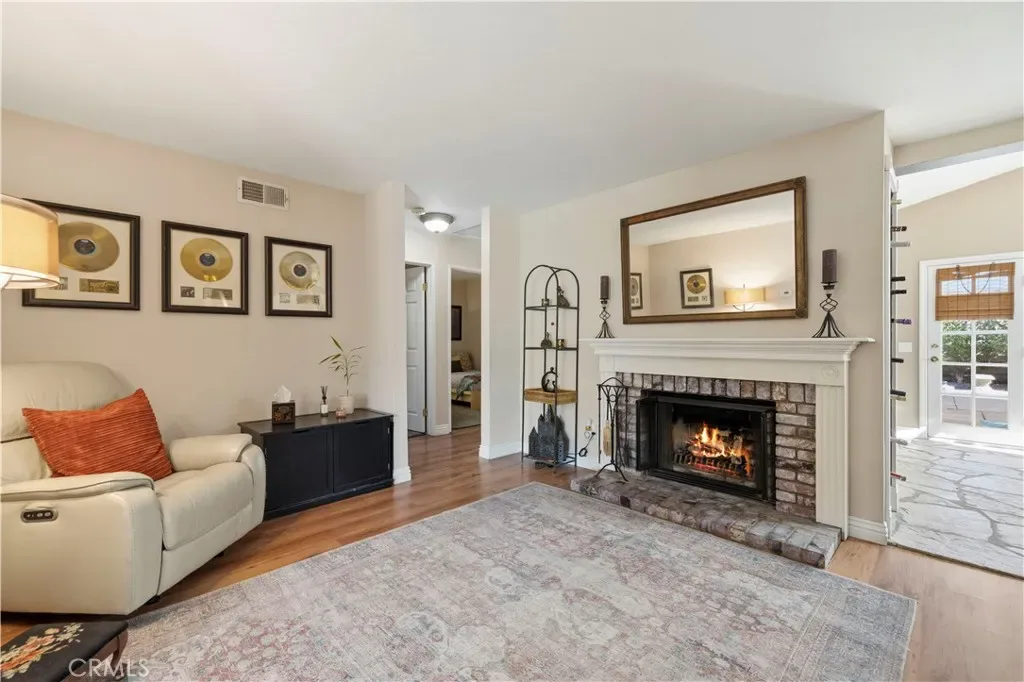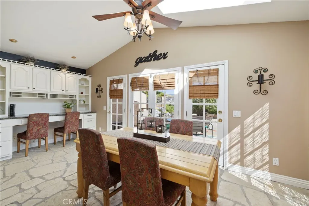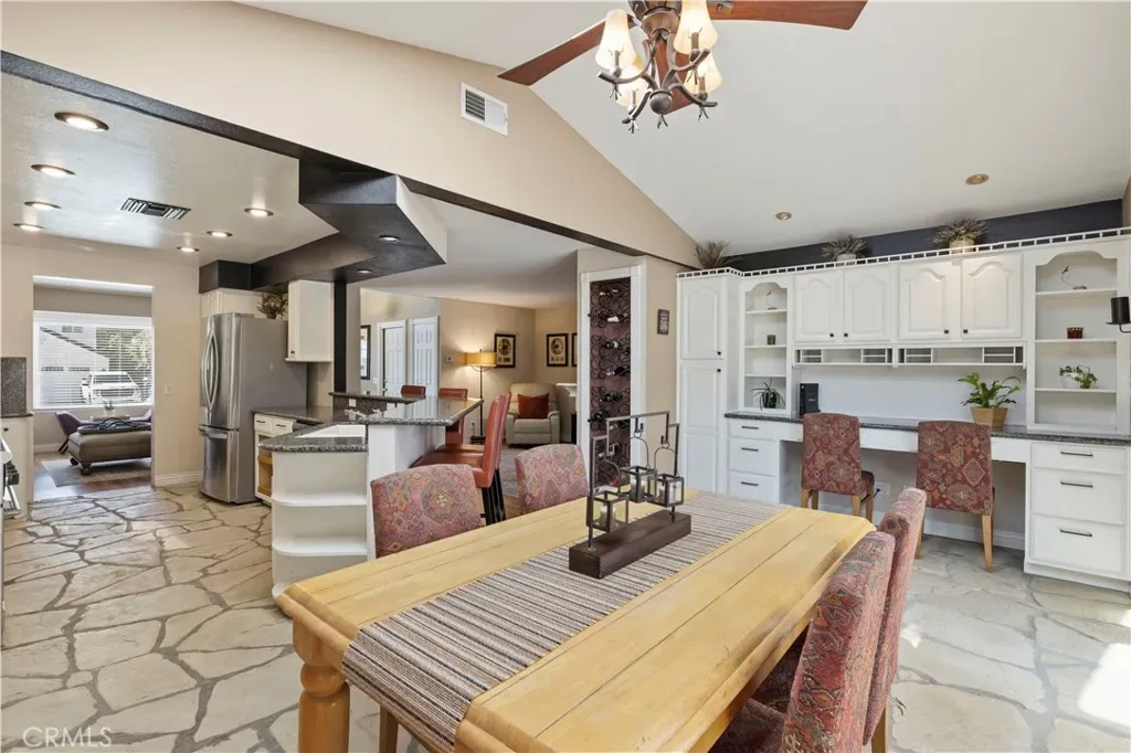 This charming single-story Hidden Lake beauty is TURN-KEY and has NO HOA OR MELLO-ROOS! The pride of ownership is evident and you’re welcomed into your front living room featuring vaulted ceilings and bay windows. The floor plan flows seamlessly through the den that stays warm with a cozy brick fireplace adorned with a beautiful mantelpiece. Your remodeled kitchen is the showstopper featuring granite countertops and backsplash, a breakfast bar, white cabinetry with oil-rubbed bronze hardware, recessed lighting, stainless steel Thermador range and range hood, pantry, elegant black accents, and the most charming stone flooring that that flows into your adjacent dining room featuring a built-in wine rack wall and where natural light pours in through the two skylights in the vaulted ceiling above. A built-in office space completes your dining area where French doors provide access to your spacious, low maintenance backyard featuring a koi pond, large custom built storage shed, and citrus fruit trees including grapefruits, lemons, oranges, tangerines, and kumquats! You have 3 cozy bedrooms and a remodeled hallway bath with a jetted bathtub and skylight above. Your primary suite has vaulted ceilings, a walk-in closet, 3/4 bath, and its own slider for dedicated backyard access. Your 2 car garage has been converted to a spacious 4th bedroom with a closet, ventilation, drywall, carpet, and indoor laundry area. Your 40 year roof is only about 10 years old and water heater was just replaced in 2025! Located close to Castaic Lake and just a short drive away from multiple parks, strip malls, shopping, and dining, come make this charming beauty your own while you can!