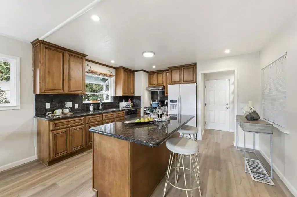 Imagine being a short 10 minute walk away from THE. LAKE. CHABOT. Welcome to this tastefully updated home located in charming Castro Valley. With 1,677 sq ft 3 bedrooms and two bathrooms of upstairs living space, this property offers a well-designed layout and a separate family room downstairs, ideal for gatherings and relaxation. The upstairs kitchen is equipped with a gas cooktop, granite countertops, a dishwasher, garbage disposal, refrigerator and a convenient island. Additionally, a separate 858 sq ft downstairs 1 Bedroom 1 Bath unit with its own kitchen, is perfect for generational living, or to rent out as an investment. The home features new upstairs bathroom fixtures and tile and newly installed vinyl plank flooring in the rest of the home, adding both style and durability. Amenities include upstairs kitchen bay window, central AC for year-round comfort, and modern energy features like solar (leased, assumable), dual pane windows, and a tankless water heater. The main home comes with laundry hookups in utility room near garage, also in downstairs family room, and the downstairs ADU has a stackable washer and dryer included. Avocado tree in front yard! Castro Valley has so much to offer. Come see your future home!