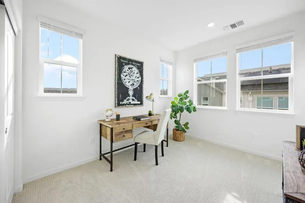 Sought-after corner homesite location! This brand-new home features a spacious living and dining area, ready to host guests or relax family. An outside deck welcomes weekend brunches and latte breaks. The chef-inspired kitchen showcases quartz countertops, a convenient island, ample cabinet space, along with a pantry and stainless-steel appliances. Dedicated laundry area and convenient powder bath. On the 3rd floor, a large primary bedroom leads to walk-in closet. Relax in a spa-like primary bath with dual vanity sinks. Luxury vinyl plank flooring at entry, living, dining and kitchen areas. This brand-new community will feature a community play area, bike racks and bike repair station, plus park-like areas with seating, open space and art installations. Other features include a 40-amp. electric charging station pre-wiring, solar energy system (lease or purchase required) and a limited 10-year warranty. Walking distance to Castro Valley BART station; convenient to I-580 and Tri Valley, San Jose and Mid-Peninsula job centers. Close to outdoor recreation, including Chabot Regional Park and Cull Canyon Regional Recreation Area. Schedule a tour today.
