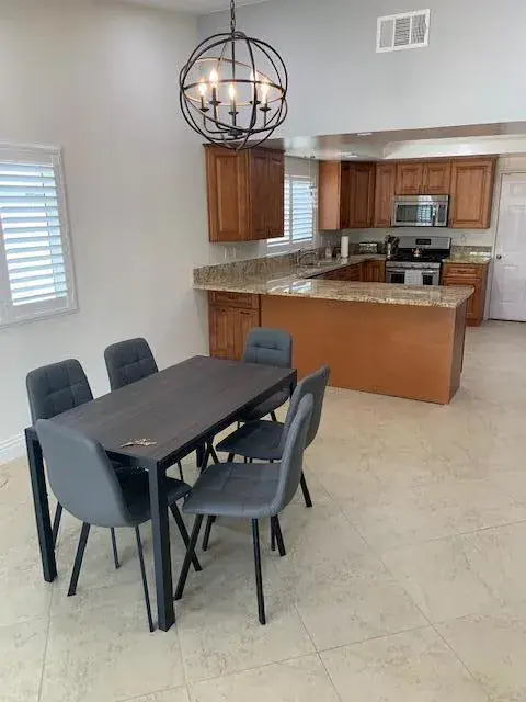 Booked till June 30, 2026 Beautiful 3 bedroom 2 bathroom home. This, home has everything you will need. Located in the highly desired Rio Vista neighborhood, this fully remodeled home has a Brand new custom built kitchen, granite countertops and Stainless Steel Appliances, and a salt-watered pebble pool. Enjoy Panoramic mountain views from a fully covered Patio Covered with all the Lush Landscaping!! Located conveniently close to major freeways, shopping plazas, supermarkets, and new casinos & much more. Perfect vacation rental, Available short or long term. Fully furnished turn-key…
