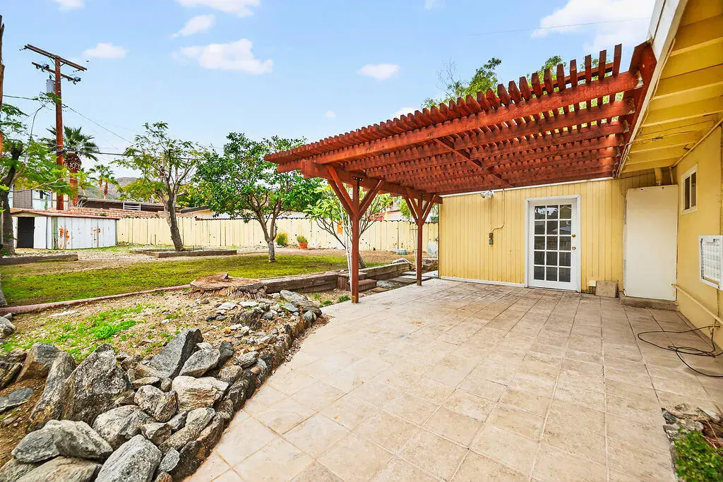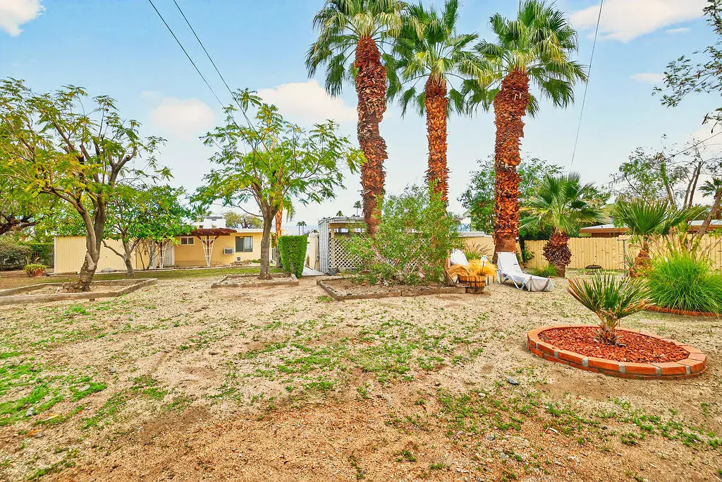 Offering approximately 1,828 sq ft of living space on an expansive 15,882 sq ft lot with room to add a pool. This unique property features a 2-bedroom, 1-bath main residence plus a separate casita with a flexible bedroom that can be divided into living and sleeping areas, along with a bathroom and kitchenette. Both homes share a conveniently located laundry room and include two large storage areas. The main house offers two bedrooms, a full bathroom, a spacious great room with fireplace, a functional galley kitchen, and a covered front patio–ideal for enjoying a morning coffee or an evening glass of wine while watching the world go by. The casita features a versatile living/sleeping space, a bathroom with tub/shower combination and pedestal sink, a galley-style kitchenette, and a full wall of closets providing ample storage. Covered patios at both the front and back of the guest house extend the living space and create inviting areas for relaxing or entertaining. Additional highlights include dual-pane windows, tile flooring throughout, and defined living and dining areas that enhance comfort and efficiency. Live in one unit and rent the other–short-term, seasonal, or long-term rentals are permitted when owner-occupying one unit full time (buyer to verify with the city). Situated on a quiet, private street and surrounded by mature desert landscaping, the property showcases eclectic architectural character and relaxed desert living. Located in the highly desirable Cathedral City Cove, a friendly and diverse neighborhood known for its welcoming vibe and strong sense of community. Centrally located near downtown Cathedral City’s theaters, restaurants, and Agua Caliente Casino, with Palm Springs and El Paseo just 15 minutes away. Sewer installation and street repaving were completed in 2007-2008. The 30-year sewer assessment runs through 2035 at approximately $1,482 annually and is paid with property taxes. Located on FEE land with no HOA, this versatile property offers exceptional value, flexibility, and opportunity. Welcome home!