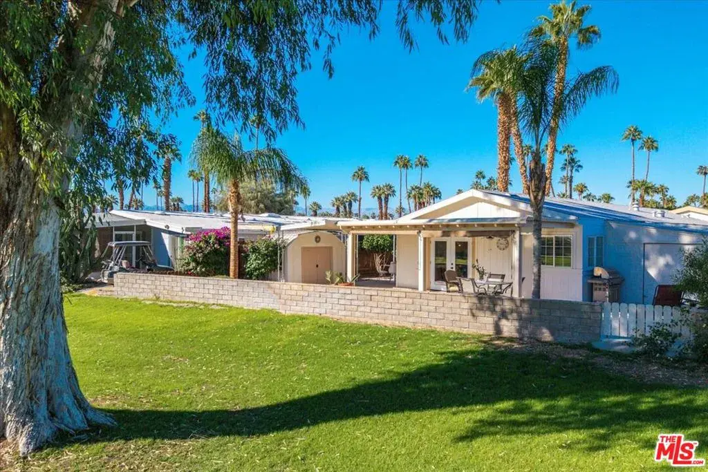Introducing another stunning INCOME PRODUCING creation by Rick Metz, one of the Coachella Valley’s most talented residential designers. This unique reimagining and repurposing of a mobile home interior is sure to inspire a “Wow!” the moment you step foot trough the double-door entry and into the grand foyer. Offered turn-key & fully furnished, this totally remodeled & renovated property features a two bedroom / two bath primary residence AS WELL AS an attached private casita / guest house / in-law suite – complete with it’s own separate entry, kitchen, bath, laundry, and private driveway! This clever use of space enables a homeowner to take on a “roommate” and offset monthly living expenses while still enjoying the privacy of their own residence. Located not far from a community pool, spa, sauna & gym, the main residence also features an updated kitchen w/ high-end appliances & large walk-in pantry, a formal dining room, living room with vaulted ceilings, two fully renovated baths, dual but separate vanities in the primary bath, laundry room, two private covered patios, stunning views of the golf course and mountains, a koi pond (you provide the koi) as well a utility shed, golf cart garage, attached carport with room for multiple cars… The list goes on and on. Date Palm Country Club is THE premier 55+ MH golf community in Cathedral City. Monthly lot rent is only $1,735. Amenities and activities abound. See it today!