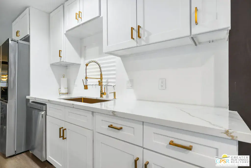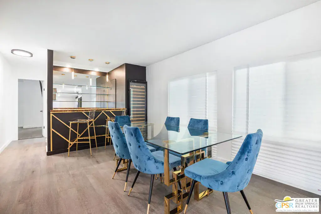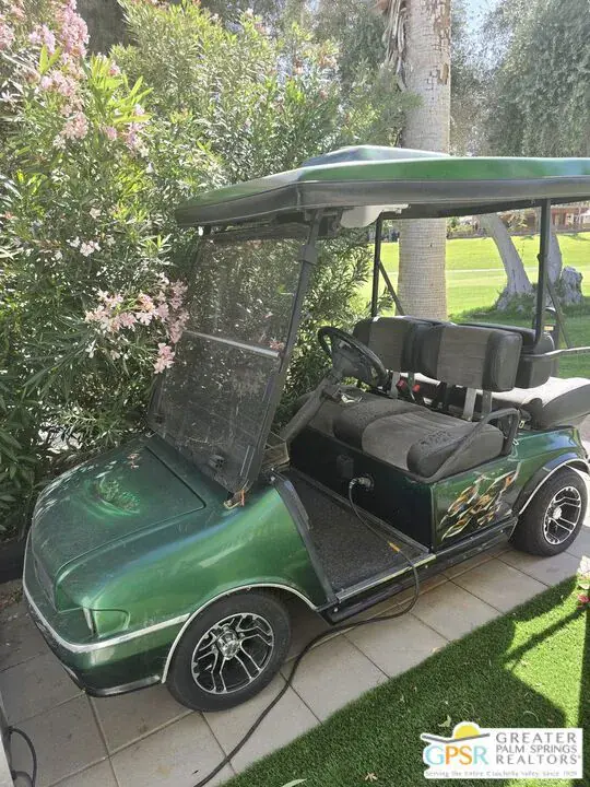 Come see this updated, newly painted inside and out, 1440 sq ft, 2bed/2bath home situated on the golf course with fabulous golf/mountain views. Property is located in one of the premier 55+ guard gated golf course communities in the valley with personal & social activities galore for the Active Adult. This home has so many NEW improvements exterior and interior which includes but is not limited to: new fencing leading to expansive and visually pleasing front door patio, desert and artificial grass landscaping with accented exterior lighting all around, your personal practice putting green (off the golf course patio) to work on the most serious part of your game or just to relax with some outdoor activity. There’s an outdoor stone top table to enjoy the views, sip your favorite cocktail/enjoy your favorite meal all while watching the duffers do their magic. Interior changes start with new front door, includes drywalling throughout, vinyl flooring throughout, double pane windows for energy savings, recessed lighting, designer fans, decorative fireplace, power outlets with USB/Type C receptacles. The kitchen features stone water counters, all new appliances (all internet connectable). The wet bar has even been updated with ‘live wood’ bar tops and a almost ceiling to floor wine cooler. The primary bedroom features a designer full wall closet. Both bathrooms feature floating vanities, new toilets. Primary bathroom has walk in shower while guest bathroom has jacuzzi tub. Laundry room features top of the line Washer/Dryer units. All furnishings, 3 mounted TVs, golf cart come with a full price offer, otherwise negotiable outside of escrow. A full price offer will also garner a $10,000 credit that can be used by buyers for first 6 months of rent space!! Date Palm CC has many other amenities besides golf which includes onsite restaurant, tennis/pickleball courts, a sports pavilion for billiards, ping-pong tables etc, satellite pools and spas, fitness rooms, large clubhouse with main pool/spa. Don’t let the space rent rate deter you. It is commensurate with what this park has to offer! over any like it in the valley. All this home really needs is… YOU!!