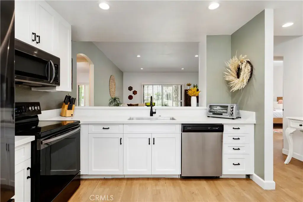 This recently remodeled condo is perfectly situated in a private location near the gate for easy access, with a back patio that opens directly to the pool. Freshly painted in light neutral tones, the home features cream-painted doors with satin black handles for a modern touch. Designed with comfort and relaxation in mind, it offers two spacious entertaining patios—one in front and one in back.