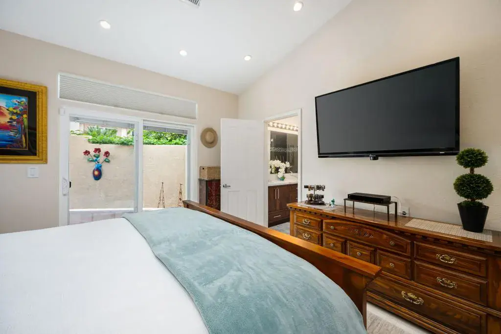 YOU OWN THE LAND! This is a very special home at DPCC. Over $100,000 in recent upgrades (see attached Document list)! Built for both maximum relaxation and entertaining friends and family. Stunning southwestern views of Mt. San Jacinto, the green on #4 of the Vista Course and nature at your back door. Upgrades include chef’s kitchen, custom bathrooms, new windows, newer HVAC & mini-split, custom stone work on the exterior. Offered partially furnished, including custom artwork. This won’t stay on the market long. Two master suites plus den/office which doubles as the third guest room. A MUST SEE!HOA DUES INCLUDE: 2 DVR or HD Cable boxes and service, High Speed Internet, grounds maintained to your door by HOA ground maintenance crew, outside pest control when requested, outside water (you pay only for inside water). Gated community with 24-hour guard gate access, membership to Health and Fitness Center, Tennis, Bocce Ball, and Pickleball. Discounts and preferred tee-times for owners at the Desert Princess 27-hole PGA Championship golf course, no initiation fees, rated among the best in the valley by GOLF DIGEST. This quiet community is away from the noise yet minutes from everything in Palm Springs: restaurants, shopping, casinos, an international airport, the Tramway, the Art Museum, the Theaters, and the Street Fair.