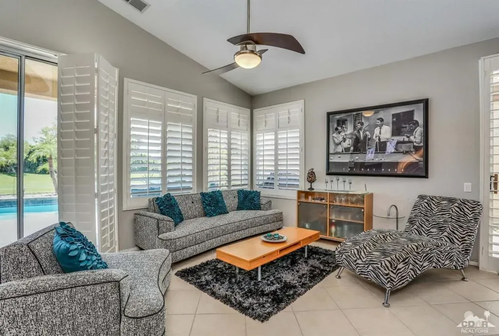 YOU OWN THE LAND! South facing spectacular views of mountains, Lake & Golf Course. Most sought after floor plan St Andrews! Beautiful Very private pool with spa and back yard. This home has 3 full bedrooms, Nice Tile flooring, upgraded baths, Ceiling fans thru-out, Shutters, Gas Fireplace, SOLD Beautifully furnished, large kitchen and the view make’s this a great entertaining home! Newer A/c, NEW pool heater. This is a must see Home!!The Desert Princess has an affordable 27-hole PGA Championship golf course, no initiation fees, rated among the best in the valley by GOLF DIGEST. We have a club house/restaurant, Fitness Center, tennis courts, Pickle Ball, all included in your HOA dues. . Perfect Golf community is away from the noise yet minutes from everything that is in Palm Springs, restaurants, shopping, casinos, an international airport, the Tramway, Art Museum, Theaters
