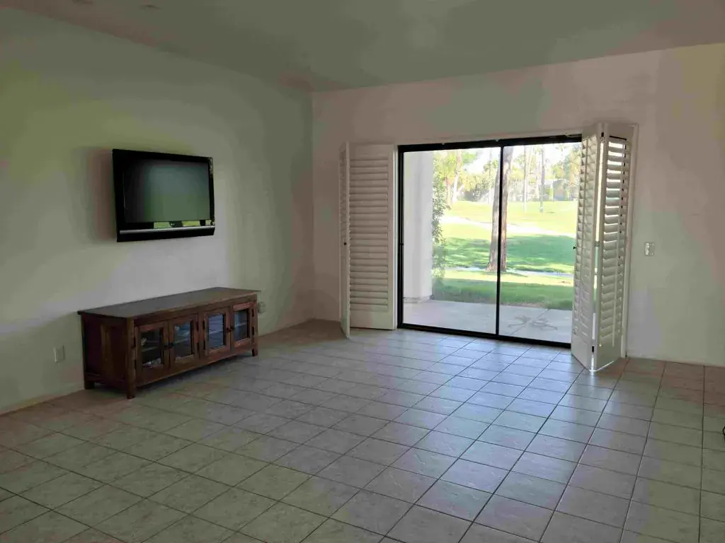 JUST LISTED!! RARELY AVAILABLE! UNFURNISHED 2BR 2BA condo with dual master suites, each with ensuite baths and large walk-in closets, opening to the patio. Large central living area opens to large patio facing the golf course, overlooking the putting green at the Lagos #5 golf hole. 9 foot ceilings and plantation shutters throughout. New refrigerator and stove, quartz countertops and tile floors throughout. Located just steps from your own semi-private pool and spa. Includes 1-car garage and golf cart parking spot. Tenant pays utilities, but Spectrum CATV, internet and wifi is included, as is full access to resort amenities, country club, fitness center, tennis and golf (green fees are extra). Desert Princess Palm Springs is a luxurious resort close to freeway, downtown Palm Springs and Palm Desert.
