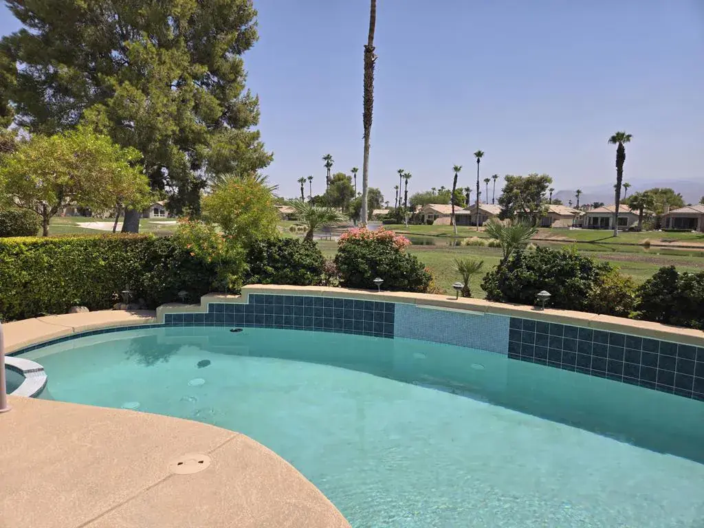 YOU OWN THE LAND! DRASTIC REDUCTION! Beautiful views South to mountains and course. Welcome to your very own slice of paradise, where convenience meets comfort in a private retreat designed for relaxation and rejuvenation. Picture yourself lounging by the PRIVATE POOL and indulging in the SPA, both inviting you to unwind and soak up the sun in a tranquil setting. Each morning, you’ll be greeted by BREATHTAKING SOUTHWEST MOUNTAIN VIEWS, as natural light flows through abundant windows, creating a warm and inviting atmosphere that feels like home. The LUSH LANDSCAPING surrounding the property enhances the serene ambiance, offering the perfect oasis to recharge your spirit. The SPACIOUS KITCHEN, complete with a delightful breakfast bar, stands ready to be the heart of your home. Dive into this realm of comfort and let this property become your new happy place. Includes working golf cart and whole-home humidifier system, and whole house speaker system.HOA DUES INCLUDE: 2 DVR or HD Cable boxes and service, High Speed Internet, grounds maintained to your door by HOA ground maintenance crew, outside pest control when requested, outside water, (you pay only for inside water). Gated community with 24 hour guard gate access, membership to Health and Fitness Center, Tennis, Bocce Ball, Pickleball. Discounts and preferred tee-times for owners at the Desert Princess 27-hole PGA Championship golf course, no initiation fees, rated among the best in the valley by GOLF DIGEST. This quiet community is away from the noise yet minutes from everything that is in Palm Springs; restaurants, shopping, casinos, an international airport, the Tramway, Art Museum, Theaters, and the Street Fair.