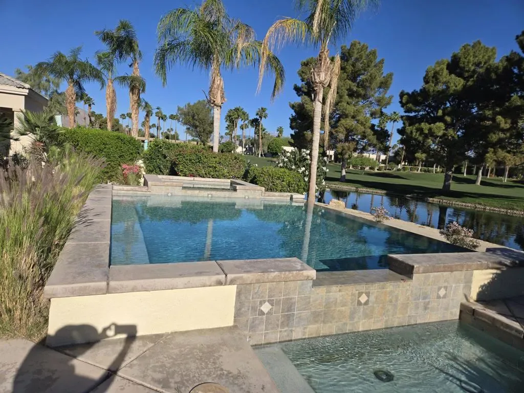 WOW! Enjoy an amazing infinity pool and spa overlooking a tranquil pond and the Cielo #8 fairway, with mountain views just to the left–simply stunning! This light and bright home features 3 bedrooms plus a versatile bonus room, perfect for an office, 4th sleeping area, or whatever suits your needs. A new HVAC system was installed in March 2022 for added comfort and efficiency. Offered furnished per seller’s inventory. An ideal getaway or full-time residence located in the heart of Desert Princess Country Club!Land lease is through 2069, monthly ground rent is only $122.44 per month.HOA fees include High Speed Internet, (2) DVR cable boxes, outside water, 24 hours guard gate and more! The Desert Princess has an affordable 27-hole PGA Championship golf course, no Tee-time lotteries, no initiation fees, rated among the best in the valley by GOLF DIGEST. This quiet community is away from the noise yet minutes from everything that is in Palm Springs; restaurants, shopping, casinos, an international airport, the Tramway, Art Museum, Theaters, and the Street Fair. 27 Holes of Championship Golf. Restaurant on site. Pamper yourself at our Wellness Spa, on site. Boasting 34 Community Pools and Spas-Make this your new address!