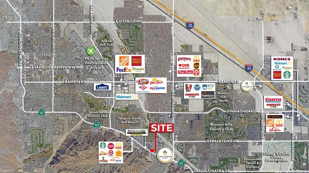 9,583 SF commercial corner lot located at signalized intersection on major thoroughfare in Cathedral City. Fully improved with block wall, iron-rod fencing, and entry gate. Close proximity to Cathedral City Arts & Entertainment District, the new Agua Caliente Casino. Impressive traffic counts of 34,420 AADT on Highway 111. Located within an Opportunity Zone, with potential for tax incentives. 4 miles away from Palm Springs Airport. Cathedral City has the second highest full-time population in the Coachella Valley. Cathedral City is pro growth and business friendly. 100,000 year round west valley residents within 5-mile radius. Brochure can be downloadable in the ‘Document’ tab.