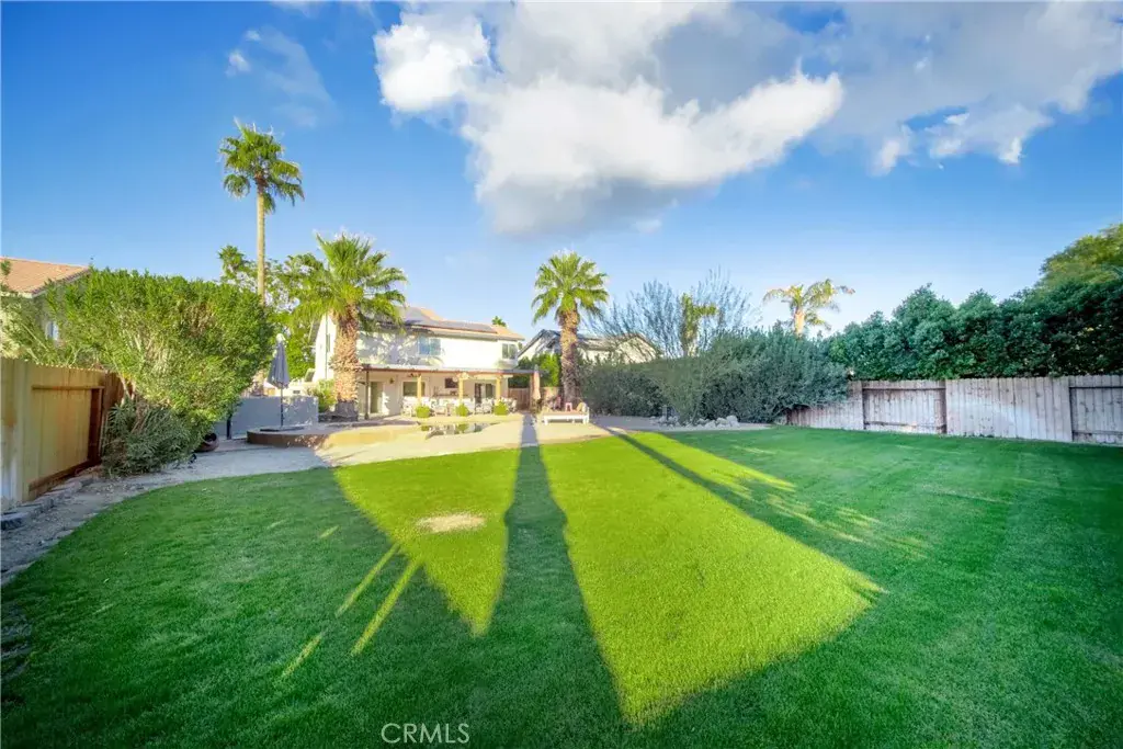 But the real magic happens outside. Step out onto the patio and discover a private oasis featuring a sparkling pool, perfect for cooling off on a hot desert day. Lounge on comfortable seating, enjoy al fresco dining with a built-in BBQ grill, or simply soak up the sun on the lush green lawn.