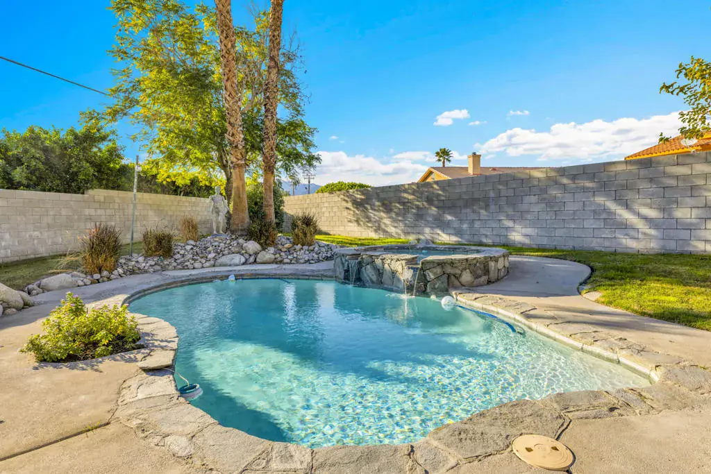 Welcome to this stunning home located in the highly desirable Panorama neighborhood of Cathedral City. Situated at the end of a quiet cul-de-sac, this residence offers the perfect combination of privacy, comfort, and desert charm. From the moment you arrive, you’ll be greeted by a custom-designed entry gate that sets the tone for the unique character of the property.Inside, the home features a spacious split-level floor plan with a large open great room, complete with soaring cathedral ceilings and a cozy fireplace that creates a warm and inviting atmosphere. Natural light pours in through expansive windows, highlighting the thoughtful design and providing a seamless flow between the indoor and outdoor living spaces. The updated kitchen is a true centerpiece, boasting sleek stainless steel appliances, granite countertops, modern cabinetry, and a convenient eating bar that makes entertaining and casual dining effortless. Just off the dining area, a private balcony offers breathtaking views of the surrounding mountains and overlooks the pool and backyard below, creating the perfect spot for morning coffee or evening relaxation.The ground level offers incredible versatility with a spacious bonus area that can serve as a recreation room, home office, media room, or anything else to fit your lifestyle. The possibilities are endless, whether you need a space to work from home, enjoy movie nights, or create a private retreat for hobbies and fitness. A laundry room is also conveniently located on the ground floor for easy access. Every room in the home is equipped with ceiling fans, ensuring comfort throughout the year.Step outside and discover your own backyard oasis. The expansive yard is designed for relaxation and entertainment, featuring a sparkling pool and spa surrounded by generous patio space. Whether you’re hosting a large gathering, enjoying a summer BBQ with friends and family, or simply basking in the desert sun, this outdoor space is sure to impress. The layout provides plenty of room for lounging, dining, and creating the ultimate desert lifestyle experience.This home truly captures the essence of desert living–offering tranquility, privacy, and resort-style amenities, all while being close to shopping, dining, schools, and the vibrant energy of Cathedral City and nearby Palm Springs. Don’t miss the opportunity to make this beautiful Panorama home your own and start enjoying the best of desert living today.
