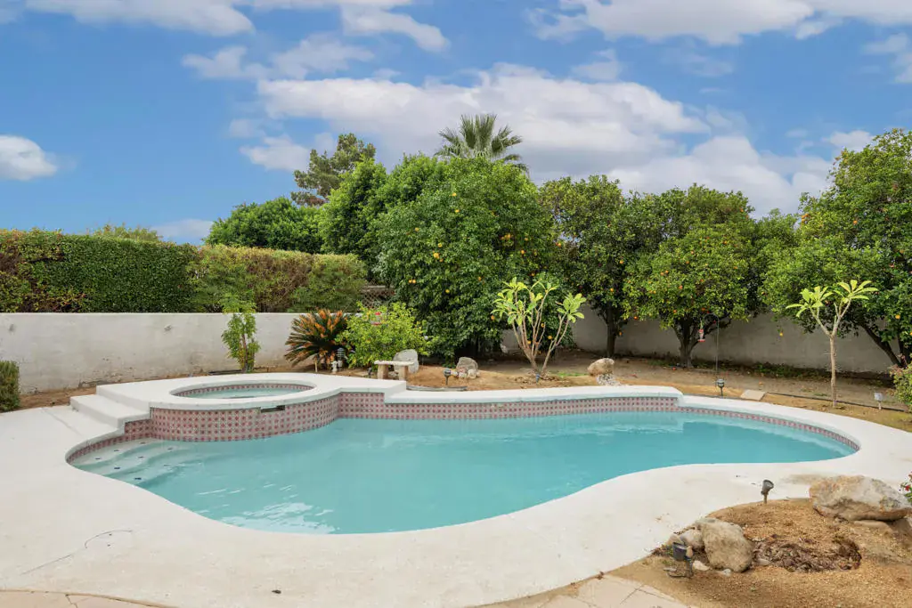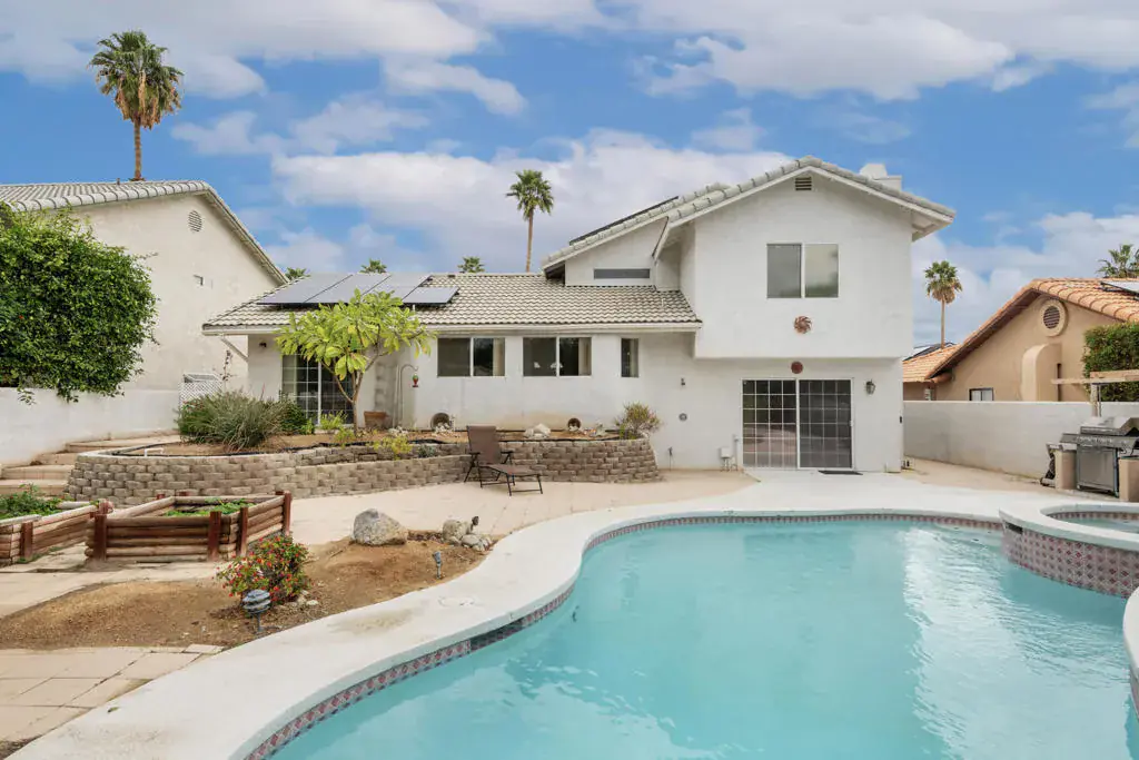 ”Your Private Desert Oasis Awaits: A Blank Canvas in Cathedral City”Please note: some photos virtually staged.Discover the potential of this spacious 4-sizable bedroom, 3-FULL bathrooms tri-level home, a true diamond in the rough with an unparalleled PRIVATE outdoor living space. Situated on a generous 8,276 sq. ft. lot in a quiet neighborhood, this property is the perfect canvas for those dreaming of customizing their Palm Springs-area retreat.The SOLAR (leased $225 monthly) home offers a substantial 2,371 sq. ft. of living space with good-sized bedrooms and a functional layout, providing the ”good bones” for a stunning renovation. Home is also move in ready but you may want to paint and add new flooring that’s all…The huge, private backyard, featuring a freshly gunited pool and spa, a covered seating area, a gas BBQ, and mature fruit trees. This space is a haven for relaxation and entertaining, epitomizing the highly desirable indoor/outdoor desert lifestyle.Conveniently located just minutes from local amenities, dining options, and casinos, combining a secluded feel with easy access to all the desert has to offer!Come on by and see for yourself!