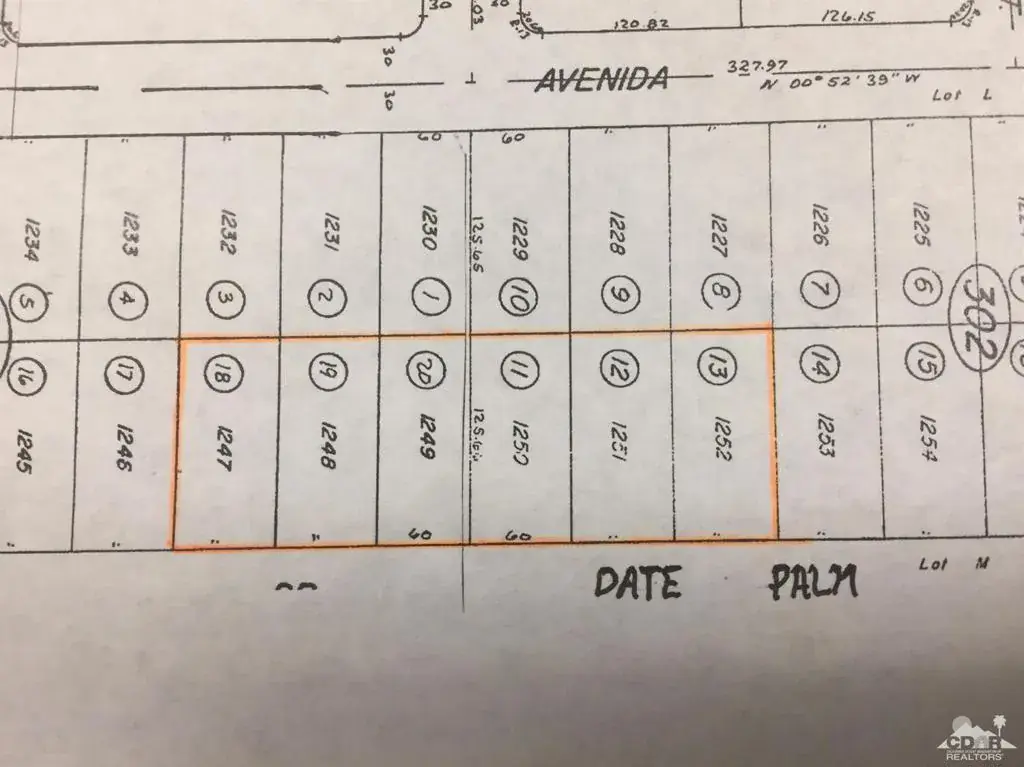 Great opportunity to own approximately 1 acre on Date Palm Drive. Consists of a total of 6 lots. Buyer to check with City for any and all zoning uses. Property is flat and in the path of development. Owners are anxious, have additional lots available. JV possible, owner carry also available, Submit.