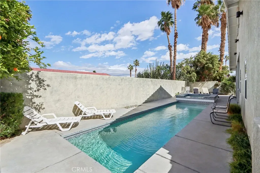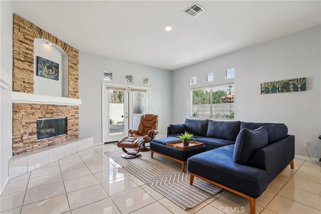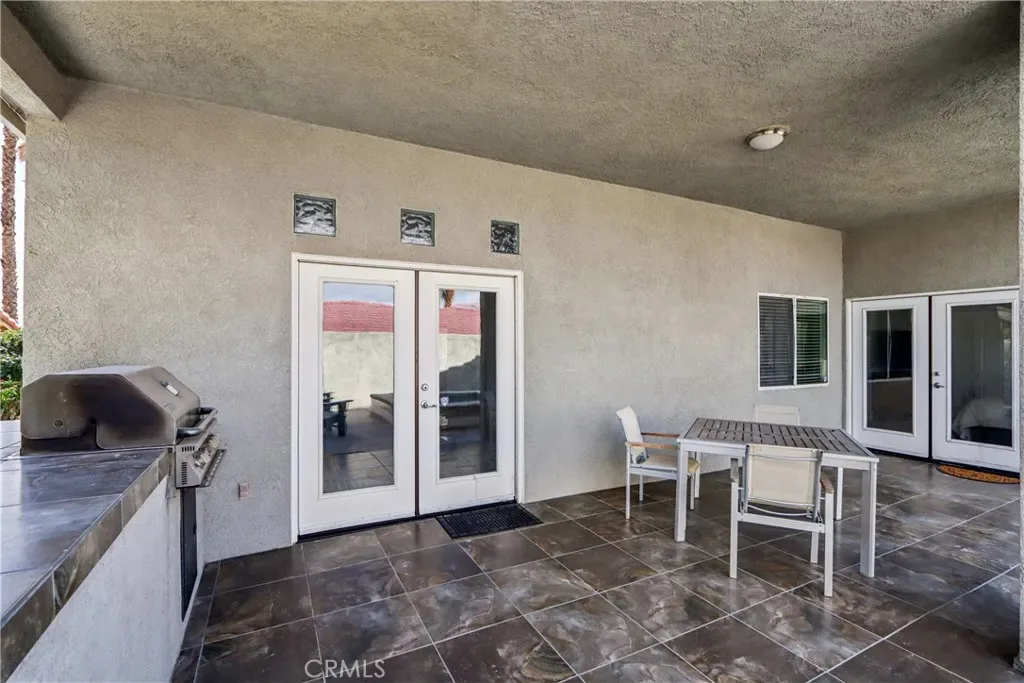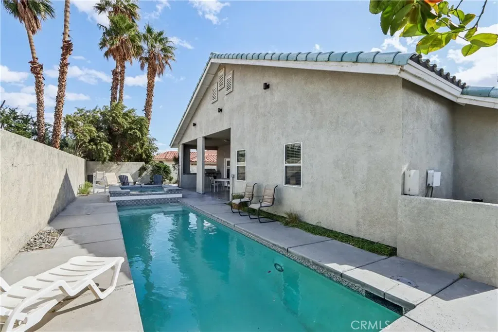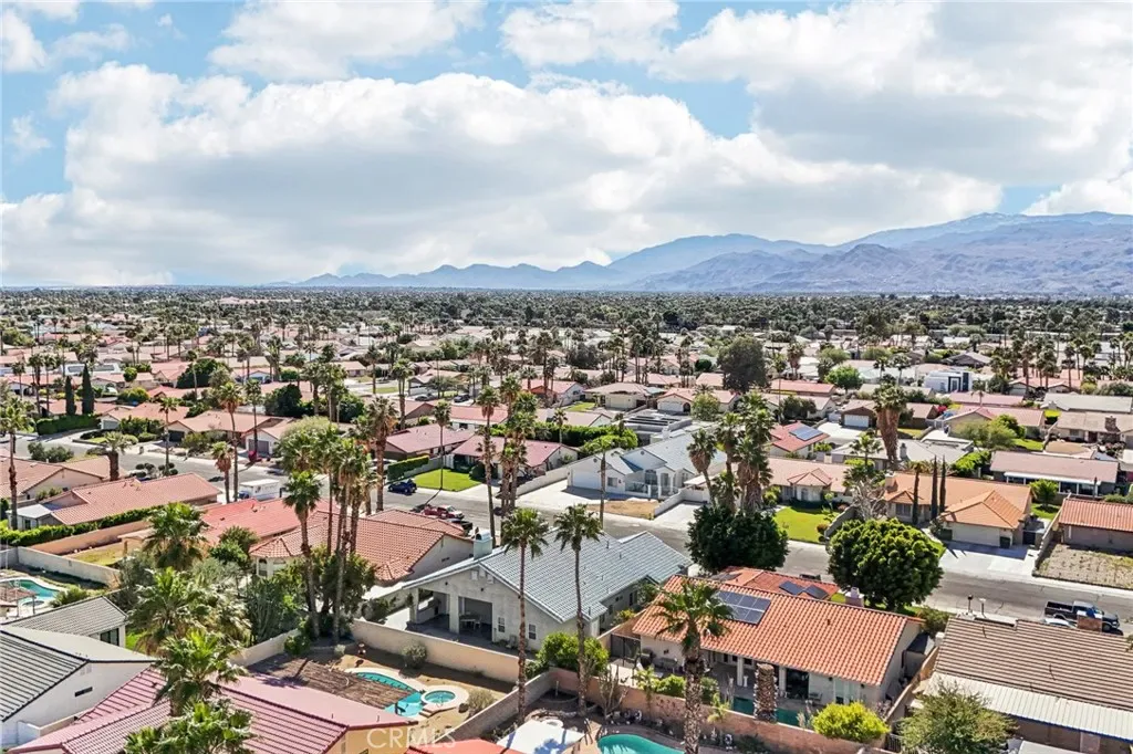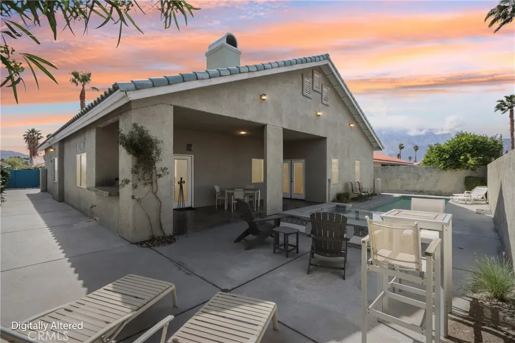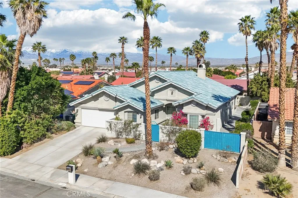 Welcome to an exceptional single-family home in the highly desirable Rio Vista enclave of Cathedral City—where sophistication, privacy, and resort-style living converge. Ideally positioned just five minutes from Palm Springs and moments from the renowned Agua Caliente Casino, premier dining, upscale shopping, and vibrant nightlife, this residence delivers the ultimate Coachella Valley lifestyle with convenient access to world-class golf and tennis destinations. Spanning approximately 2,330 square feet, this thoughtfully designed 4-bedroom plus den/office, 2-bath home offers an intelligent floor plan that balances open-concept living with defined private retreats. The foyer introduces a light-filled Great Room distinguished by elegant tray ceilings, polished ceramic tile flooring, and a striking corner fireplace with stacked stone finish that creates a warm yet refined focal point. The chef-inspired kitchen is engineered for both everyday living and entertaining, featuring stainless steel appliances, double ovens, expansive cabinetry, generous counter space, a walk-in pantry, and an inviting breakfast bar with dining bay. The primary suite serves as a true executive retreat, complete with dual walk-in closets and a spa-inspired bath featuring double vanities, a deep soaking tub, and an oversized dual shower. Secondary bedrooms are generously proportioned, offering flexibility for guests, family, or work-from-home needs. Step outside to a fully integrated outdoor living environment designed for year-round enjoyment. The expansive covered lanai features a built-in outdoor kitchen, barbecue, and dining bar, overlooking a resort-style pool and spa framed by mature landscaping—creating a private oasis ideal for entertaining or quiet relaxation. Additional highlights include gated entry, potential RV parking, a dedicated laundry room, and a spacious two-car garage. With no HOA fees, fee-simple land ownership, and a prime location at the center of the desert’s most dynamic corridor with close access to the airport, this property represents a rare opportunity to secure a turnkey residence that delivers both lifestyle elevation and long-term value. Great primary residence or vacation home. Possible RV Parking too.