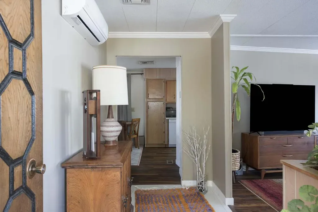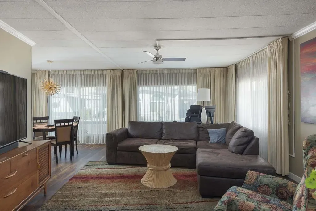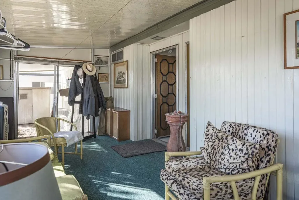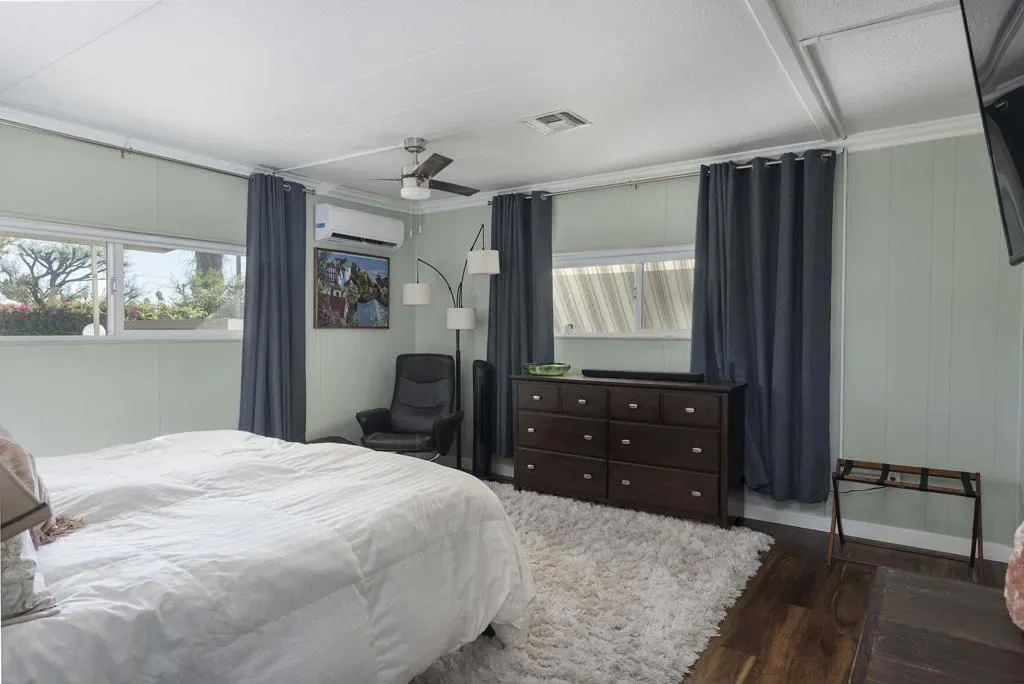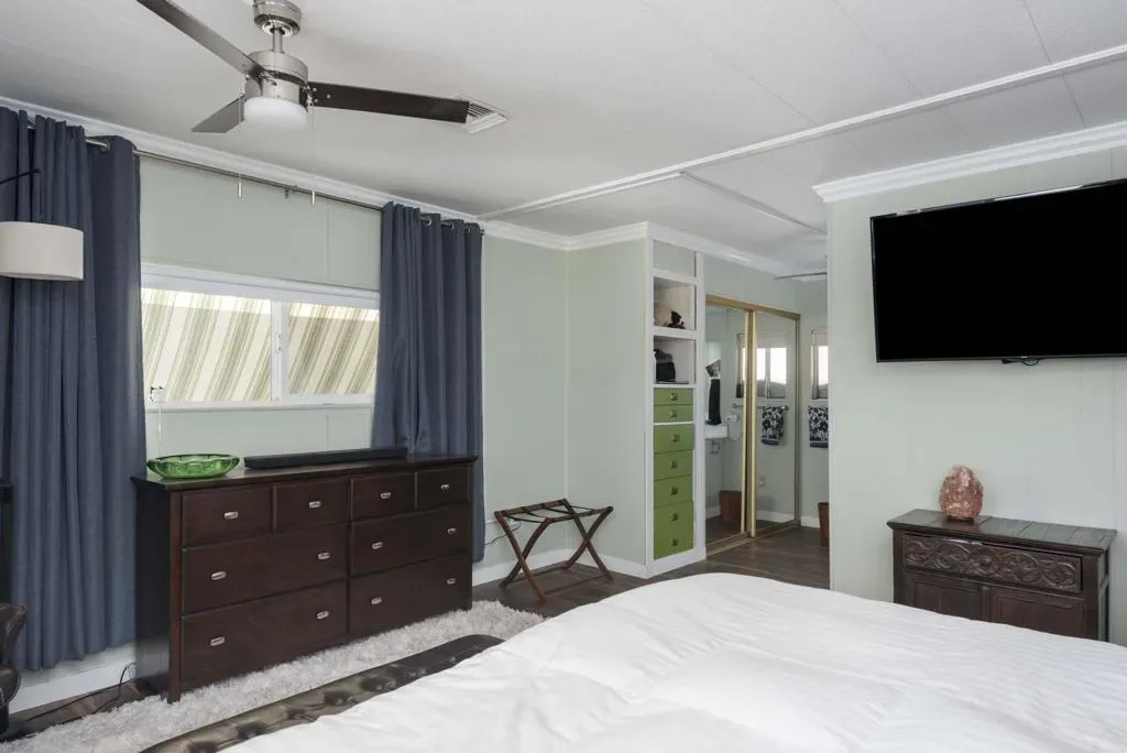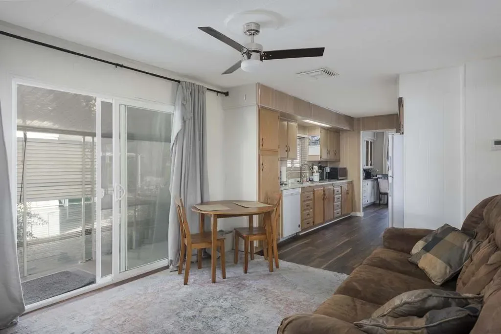 Check out this nicely updated Royal Palms Mobile in Central Cathedral City. This 1969 Royal Lancer Model has 2 Bedrooms & 2 Baths featuring a large corner lot with extra parking. As you enter, you have a nice Sun room that leads to the 1368 sq. feet of living space. The Dual Pane windows were replaced in ’22 and 3 Split A/C units installed in ’23. The exterior has been painted in 2026 ! There is a large combo Living Room and Dining Room area, which leads to the galley kitchen with a full array of white appliances. The original Formica countertops are in excellent shape. The flooring has been replaced with a rich and warm laminate throughout. The rear oversized Primary Suite has dual sinks and a nice walk-in shower. The guest bedroom has closet space and separate bath with step-in shower. There is a full-sized Washer/Dryer in Hall closet. The new foam roof has been installed recently and there is ample parking for two cars of off street parking in carport. There are also two storage sheds for extra storage needs. Royal Palms monthly lot rent starts around $890 and will need to qualify as a resident with Application from the onsite office. There are many onsite amenities to include putting green, sports courts, shuffleboard lanes, clubhouse with pool and spa. This property is being sold furnished per inventory, priced well to sell so Make an OFFER !!