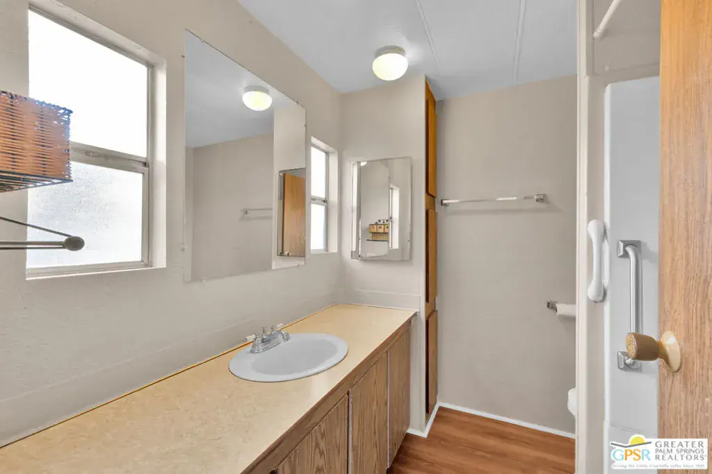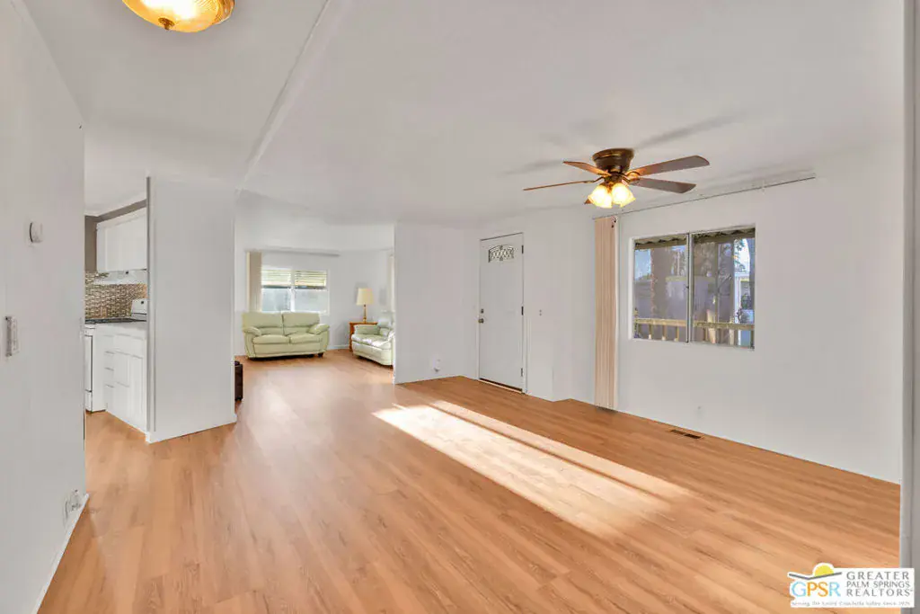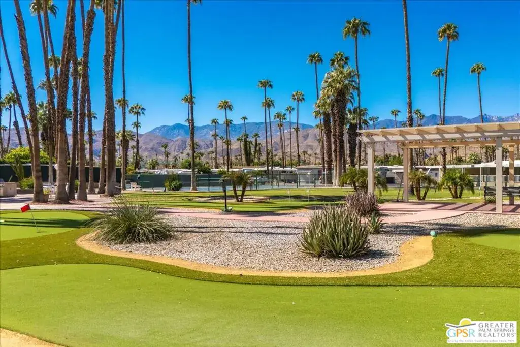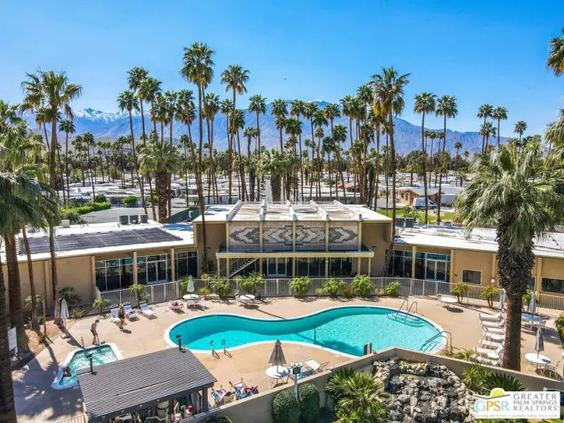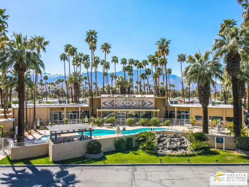 This 2-bedroom, 2-bathroom home with a mid-century vibe offers 1,248 square feet of comfortable desert living at an exceptional value. With large new west facing windows that fill the home with bright natural light and showcase the views of the San Jacinto Mountains. The home features new flooring throughout, a new HVAC system, and fresh paint. The covered front porch is perfect for relaxing, and a new awning adds extra shade. Both bedrooms include walk-in closets, and the primary bedroom features French doors that open to a private rear yard. Outside, you’ll find a quaint garden area that’s easy to enjoy and maintain. This home is move-in ready and ideal for anyone looking for a place to vacation or retire. Royal Palms is a vibrant 55+ gated community with resort like amenities including Planned Activities, Bingo, Social Events, Clubhouse, Heated Swimming Pool & Hot Tub, Fitness Center, Sauna, Putting Green, Miniature Golf, Pickleball, Bocce Ball, Billiards, Library, Dog Park, BBQ area, Laundry Facilities & much more! Centrally located in Cathedral City near public transportation, hiking trails, shopping, dining & entertainment venues and just minutes from the Palm Springs International Airport. Come see all this home and Royal Palms has to offer!