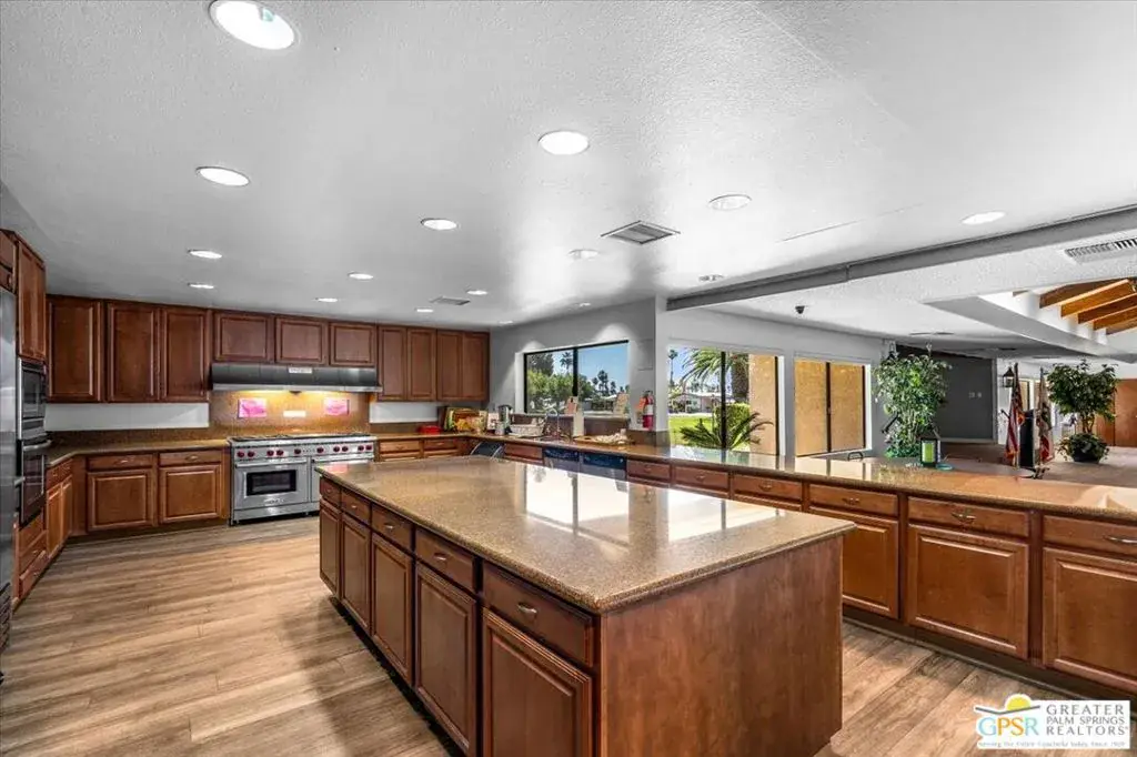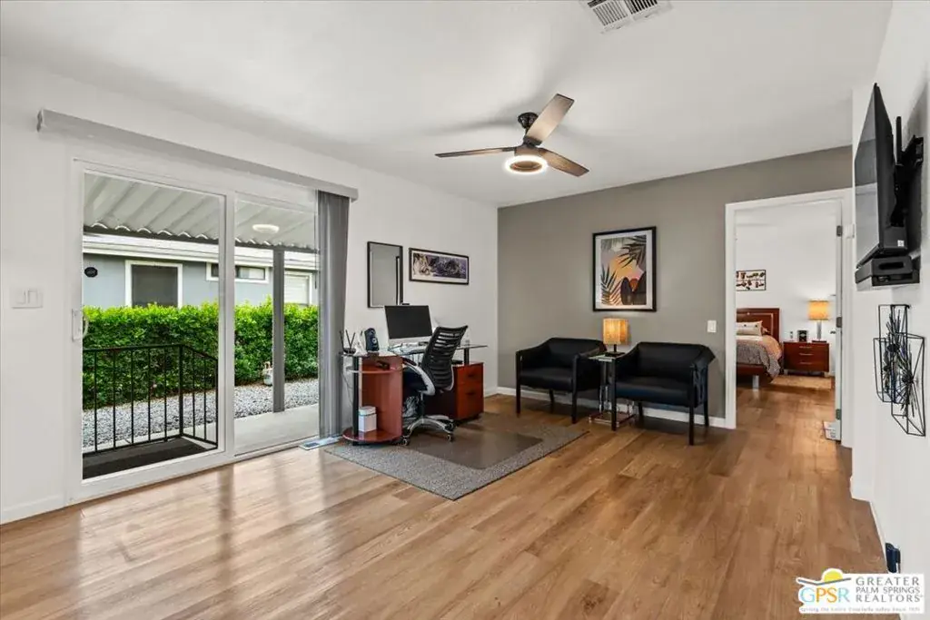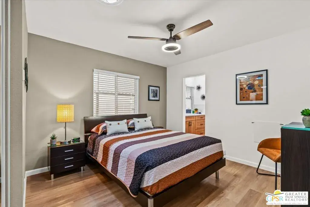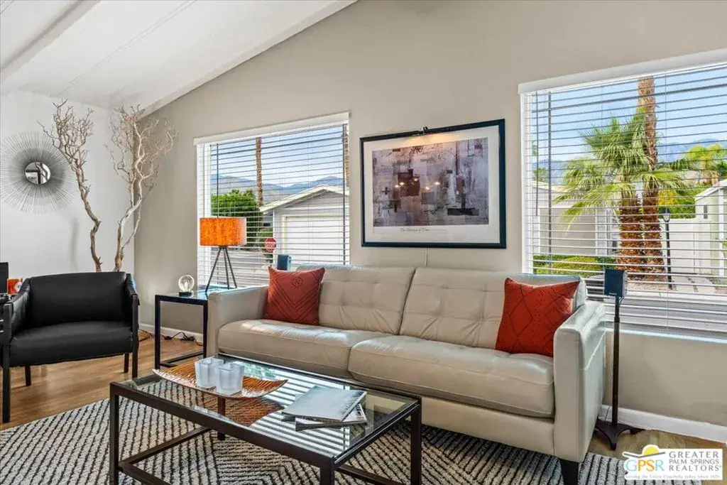 Welcome to 152 Hilligoss a beautifully upgraded 2 bedroom, 2 bathroom home located in the desirable gated community of The Canyons in Cathedral City. Situated on a premium corner lot with breathtaking mountain views, this 1,440 sq ft residence offers exceptional value with extensive modern improvements throughout. The bright and open living room features soaring high ceilings, dual pane windows for energy efficiency, and a modern lighted ceiling fan. This flows seamlessly into a spacious dining room ideal for hosting gatherings or enjoying everyday meals. The fully upgraded kitchen is a standout, showcasing soft-close cabinetry, a stylish metal farmhouse sink, newer appliances, recessed lighting, under-cabinet lighting, a separate island, and generous counter and storage space, creating both beauty and functionality. Just off the kitchen is a comfortable family room with direct access to the large covered patio, perfect for seamless indoor-outdoor living and entertaining. There is a generous primary bedroom suite with a bathroom that has been tastefully remodeled with quality finishes, offering dual sinks and a modern step-in shower. The second bedroom has direct access to the second upgraded bath with a shower and tub combo. Additional major upgrades include exterior paint completed in 2024, brand new front and back exterior doors, gas hookups available for both stove and dryer (currently electric), a newer storage shed at the end of the carport, and a separate laundry room with newer washer and dryer plus extra storage. The outdoor space has been thoughtfully designed with a concrete slab covered patio ideal for relaxing or entertaining, along with pavers along the back for easy access and low maintenance. Residents of The Canyons enjoy a gated, centrally located community offering a sparkling pool and spa, clubhouse with fitness area, billiards, card room, library, an activities room and lots of walkable green spaces, providing a resort-style lifestyle close to everything the Coachella Valley has to offer. With its premium lot, extensive upgrades, remodeled bathrooms and kitchen, energy-efficient windows, and fantastic community amenities, this move-in ready home offers outstanding value and is a must-see!