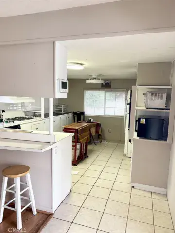 Step inside to a spacious floor plan featuring raised ceilings in the living area, creating an open and airy feel. The eat-in kitchen offers abundant storage and comes equipped with an oven/range, refrigerator, dishwasher, and microwave. The living room opens directly onto a large covered patio, perfect for relaxing or entertaining. The second bedroom, currently used as an office/storage area, includes a stackable laundry unit for added convenience. The bathroom features a tub/shower combo and plenty of space. The primary bedroom boasts a wall of closets and large windows that fill the room with natural light. Recent updates include a newer foam roof (approximately 4 years old), newer HVAC system, and a newer swamp cooler. Residents of Tramview Mobile Home Park enjoy access to a large swimming pool and spa, a clubhouse with entertainment areas, two kitchens, a piano, pool table, and card tables for owner use.