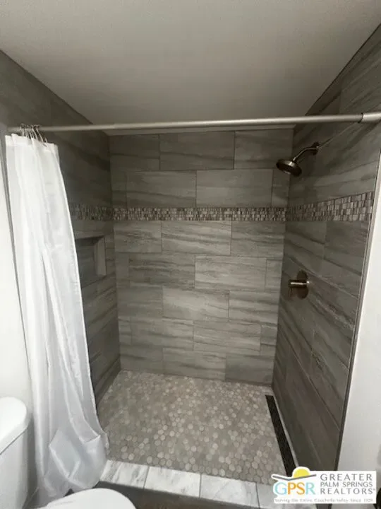 Make an offer on this renovated 2-bedroom, 1-bath home ready to move in home. All new kitchen, bathroom, flooring, and ceiling insulation. Includes 2 mini-splits, one in the living room and the bedroom. Oversized patio with an east-facing view. Side yard and space for a shed at the end of the rear yard. Carport behind the patio in the rear, which may accommodate 2 cars depending on the size. Vinyl flooring throughout. Each room features a design element, such as shiplap and floating shelves in the kitchen. The bathroom boasts a designer custom walk-in tile shower, Carrera marble vanity, and a custom mirror. Additional features include tall baseboards, Craftsman casing, and LED lighting. Located in a 55 and older community. Community amenities include a pool, hot tub, shuffleboard tournaments, ping-pong, pool table, and card table. Tramview is a 55+ senior community conveniently situated between Palm Springs, Rancho Mirage, and other desert cities, with the airport and train station nearby.