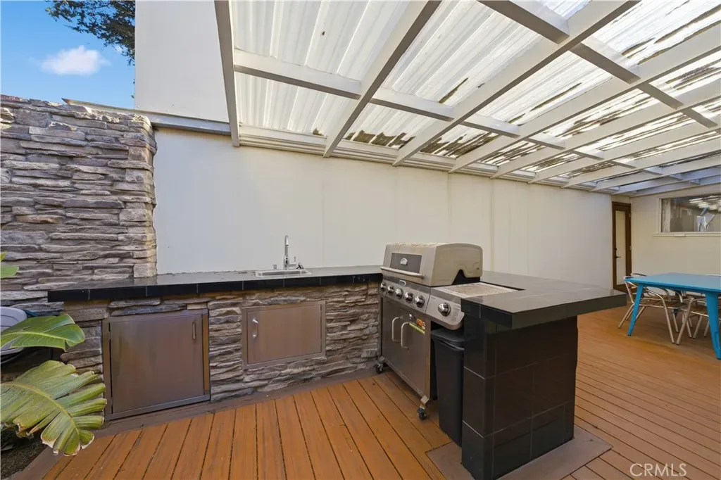 The second residence is a beautifully remodeled two-bedroom, one bathroom home featuring a gas fireplace and a private, resort-style backyard complete with a covered patio, tranquil water feature, and outdoor kitchen. This residence is perfectly suited for guest accommodations, multigenerational living, or premium rental use.