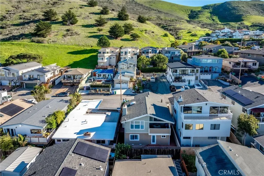 Hillside Haven with the benefit of a short term rental license and spacious floorplan. This lovely Cayucos home provides sweeping coastal views and is situated on a quiet neighborhood street used mostly by local traffic. The 2-car garage is fronted by a wide drive for off-street parking. Stone accents highlight the front. A split entry offers hillside views, and the ocean peeks over nearby houses. The main living area is a half flight up with skylight above soaring ceilings and a massive hearth. There’s a handy wet bar too! Windows and deck supply wide coastal views above the rooflines below. The kitchen has generous size and ample storage with quality appliances, cabinetry and fixtures. A generous dining area has a guest bath nearby and china storage. The outside deck area serves for viewing, but is large enough for dining. Downstairs, the primary suite boasts a shower and tub, plus more generous storage. The lower level has a total of 3 bedrooms, 2 spacious bathrooms and outside access. Spacious design, fine views, and lots of use options. See it soon.