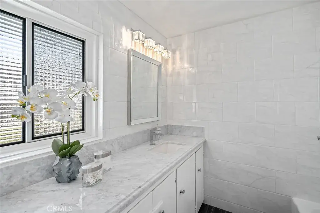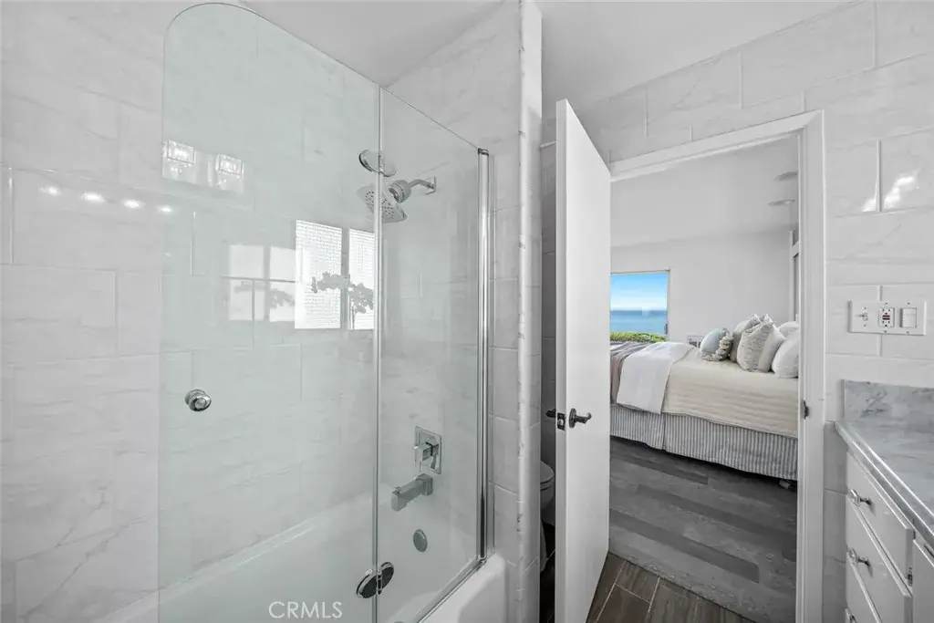 The primary suite is a true retreat with panoramic ocean views, backyard access, dual closets (including a walk-in), and an en suite bathroom with marble finishes. Two additional bedrooms also feature generous layouts and ocean views.