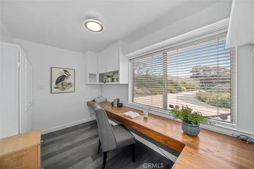 Additional highlights include a dedicated home office with built-ins and ocean views, a generous utility room with pantry storage, a sink, and secondary refrigerator, multiple bathrooms with updated tile and marble finishes, French doors leading to a private backyard, and luxury vinyl plank and tile flooring throughout. This is a rare opportunity to own a one-of-a-kind property with unparalleled views, generous space, and incredible potential, all just minutes from downtown Cayucos and the beach.