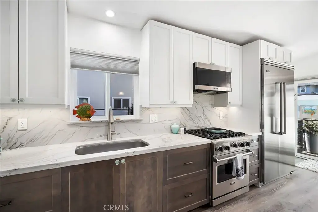 This thoughtfully remodeled, five homes off the beaches of iconic Cayucos located in the sought after numbered streets. Every detail in this bright and comfortable 2 bedroom 2 bath home has been addressed to offer a life of easy-care, casual elegance. The great room includes redesigned roof trusses to accommodate the open design and vaulted ceiling. The whole house has new plumbing, updated electrical. insulation, drywall and fresh paint inside and out. No expense was spared including the beach-friendly durable LVP floors through the entire home and radiant-heated floors in the two remodeled bathrooms. In the kitchen are Viking appliances and two stainless deep sinks that complement the beautiful maple soft-close cabinets. The countertops are timeless quartzite with a 10 yr warranty.