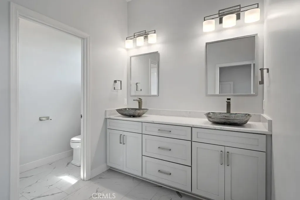 Head downstairs, and you’ll find two more bedrooms, including one with its own ensuite, plus a half bath, a covered patio with a wet bar, and access to an oversized four-car garage (because you can never have too much storage). And the backyard? Low-maintenance, effortlessly stylish, and perfect for entertaining.