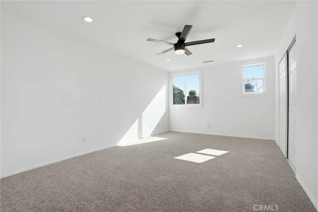 Welcome to 12143 Phoenix Drive in Cerritos, a recently renovated, rare and expansive home offering 7 bedrooms, 4 full bathrooms, approximately 3,556 square feet of living space on a private 8,139 square foot lot. Designed with two distinct living wings, this home is ideal for multigenerational living and offers ADU potential for additional income. The main downstairs wing features soaring beamed ceilings, a gourmet kitchen with newly painted cabinetry, two fireplaces in the formal living and family rooms, and four generously sized bedrooms, including a luxurious primary suite with vaulted ceilings, crown molding, an elegant arched sitting area, walk-in closet, private fireplace, and a recently remodeled bathroom with walk-in shower and new shaker-style vanity, along with three additional bedrooms and a recently remodeled hall bath. The attached apartment-style upper-level living wing offers an open-concept layout with a spacious kitchen opening to a large living room, three bedrooms including a primary suite with a resort-style bathroom featuring a soaking tub, dual sinks, and walk-in closet, a full hall bathroom, and a stackable washer and dryer, with both interior and exterior access providing privacy and flexibility for extended family, guests, or potential rental income while remaining part of the main residence. Both levels have been recently updated with new luxury vinyl plank flooring, new carpet, fresh interior paint and baseboards, new panel doors and hardware, new closet doors, light fixtures, and ceiling fans, along with newer windows, dual air conditioning units with newer thermostats, solar panels, water softener, new water pressure valve, new copper supply lines, and built-in garage cabinetry. The entertainer’s backyard features an impressive covered outdoor pavilion with wood construction, brick columns, shingle roof, and electrical, ideal for large gatherings and outdoor dining, complemented by block walls, brick and block planters, mature trees and shrubs, and brick and concrete hardscaping, while the front yard offers brick and concrete walkways, landscaped planters, an extra-wide driveway, wrought iron double-gate fencing, RV parking, and a prime location within the highly regarded ABC Unified School District, close to parks, the Cerritos Millennium Library, Los Cerritos Center, shopping, dining, and convenient freeway access.