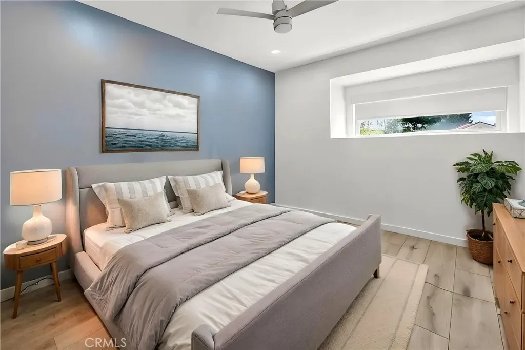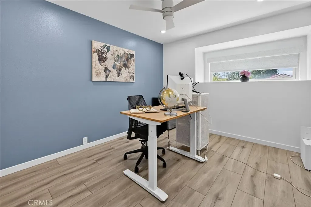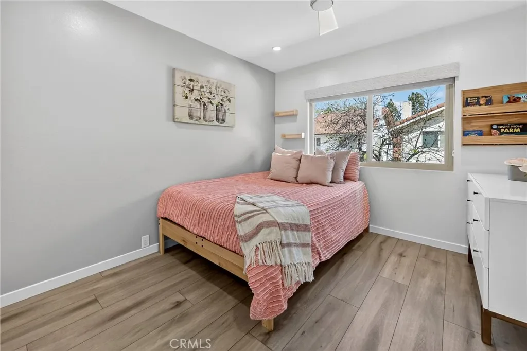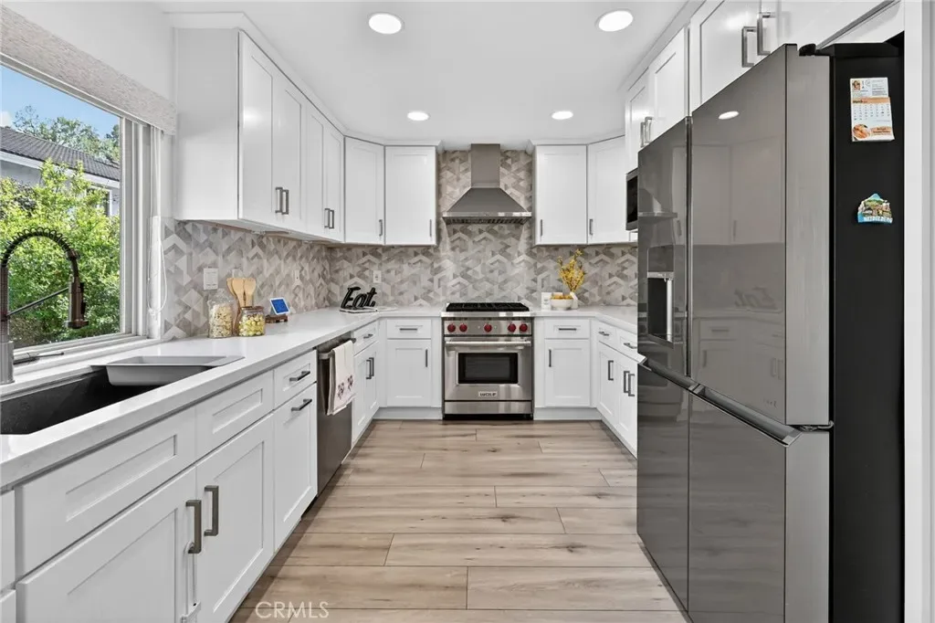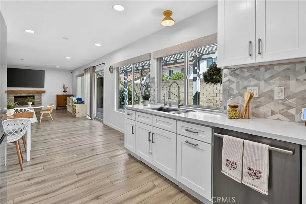 The Graceful Poetry of Inspired Harmony! Extensively renovated in October 2023 with approx $200,000 in sophisticated upgrades, this beautifully reimagined residence blends timeless elegance w/ contemporary accents in a tranquil cul-de-sac setting. Enter a bright, free-flowing interior highlighted by cathedral ceilings, leveled floors, resplendent luxury vinyl plank flooring w/ stylish baseboards, recessed LED lighting, custom fabric roller shades & thoughtfully curated finishes throughout. Its newly-painted interior walls provide a versatile canvas for any décor style. The dining area is beautifully enhanced by a modern linear chandelier & built-in shelving. The inviting family rm centers around a refaced gas fireplace w/ decorative stacked stones, a custom hearth flush w/ the floor & floating TV mount. The stunning chef’s kitchen features shaker-style cabinetry w/ solid wood frames, quartz countertops, Sedona hexagon porcelain tile backsplash, farmhouse sink, Kraus faucet & a custom built-in pantry. Premium appliances include a Wolf professional 4-burner gas range w/ convection oven, Bosch dishwasher & Whirlpool built-in microwave. The spacious primary suite offers luxury vinyl plank flooring, recessed LED lighting, custom roller shades & three closets w/ sliding paneled doors. The spa-inspired primary bath showcases a quartz dual-sink vanity, designer mirrors and lighting, Kohler fixtures, Lenox gray porcelain tile flooring & a glass-enclosed shower with Belucci Bianca porcelain tile surrounds & a marble mosaic niche. 2 additional bathrooms are luxuriously upgraded w/ quartz countertops, shaker cabinets, Kohler fixtures & designer lighting. The upstairs hallway bath features a bathtub with Caribbean green tumbled marble tile surrounds & an oversized shampoo niche w/ Caribbean green hexagon polished marble mosaic. 3 secondary BR offer comfort & style with LVP flooring, recessed lighting & custom fabric roller shades. Additional highlights include dual-pane windows, central a/c & heating, an upgraded 200-amp electrical panel and a Spanish-style concrete tile roof. The 2-car garage features epoxy floors, ample cabinetry, sectional roll-up door & GE Café refrigerator. The private yard includes mature fruit trees—avocado, persimmon, pomegranate & orange—w/ automatic sprinklers. Located just 2 homes from HOA tennis courts & close to premier shopping, dining, parks, the renowned Cerritos Library, and within the highly sought-after ABC Unified School District.
