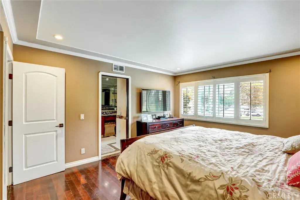 PRICE REDUCTION – STUNNING, ENTERTAINER’S DREAM HOME!! This home is absolutely move-in ready home. This home brings in a ton of natural light, it is a refreshingly fully renovated and family friendly home in well-located and maintained Cerritos. This 5-bedroom 3-bath home is facing east. The floor plan is an open, easy flowing home. Living room, dining room, kitchen dining area, and family room are each elegantly, uniquely and tastefully decorated. This home is immaculate! Spacious living room with cozy fireplace, and formal dining room that opens to an inviting outdoor open patio, BBQ grill, fire pit, outdoor fryer, built-in outdoor kitchen and large pool – 4′ to 8′ deep. Step down into a separate family room, where two bedrooms, laundry room and bathroom with shower are located (ideal for guests or share this home with family). The open kitchen includes upgrades – from porcelain countertops, floors, new kitchen appliances, gas top range, range hood and dishwasher; custom cabinetry, countertops in fully renovated kitchen and bathrooms, updated vanities, appealing fresh paint throughout, wood floors, tile floors, and modern manufactured quality vinyl wood-like floors. This home includes new windows, copper plumbing, streamlined, efficient recessed lighting throughout the house. Direct access to the large 2 car garage. Custom wood shutters, new HVAC, spa tub in master bathroom. 2 bedrooms downstairs and 3 bedrooms upstairs. Walking distance to Liberty Park, Los Cerritos Mall, and located in the award-winning ABC school district. This home is a MUST SEE!!