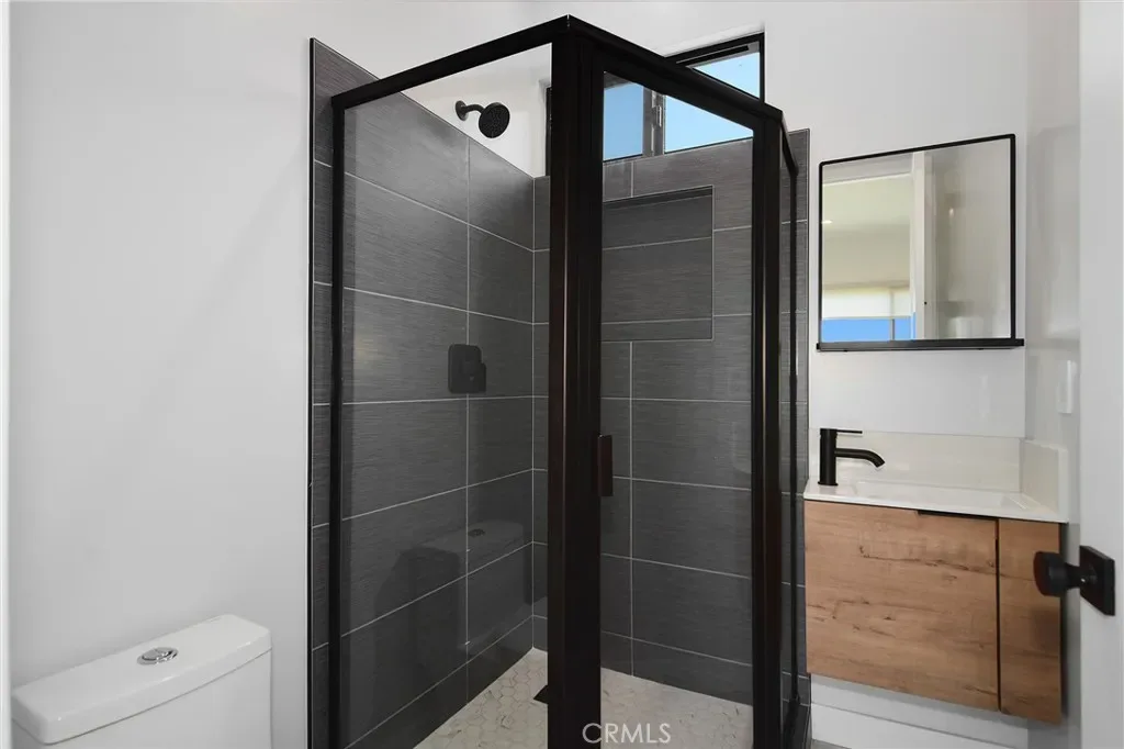The ADU spans 800 sq ft and offers split floorplan 2 bedrooms and 2 full bathrooms, Soaring 10-foot ceilings and a bright, open layout, Three oversized sliding glass doors with direct access to a large private deck, Private entrance with no shared walls, Brand-new appliances, in-unit and washer & dryer.