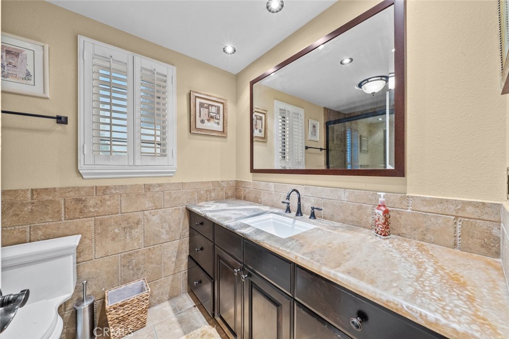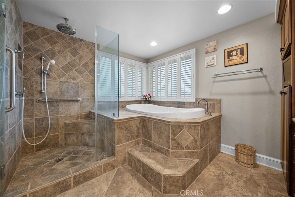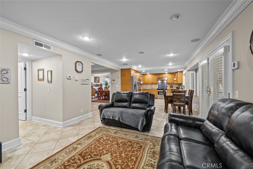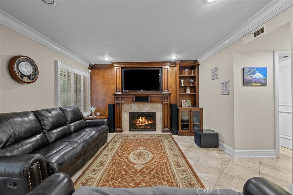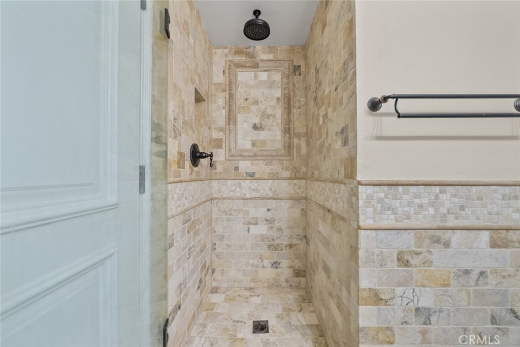 Inside, the home features elegant formal living and dining areas, highlighted by custom woodwork, crown molding, and statement lighting. The spacious layout is well-suited for both everyday living and entertaining. A beautifully upgraded bathroom showcases a spa-like walk-in shower with custom stone finishes, adding a refined touch.