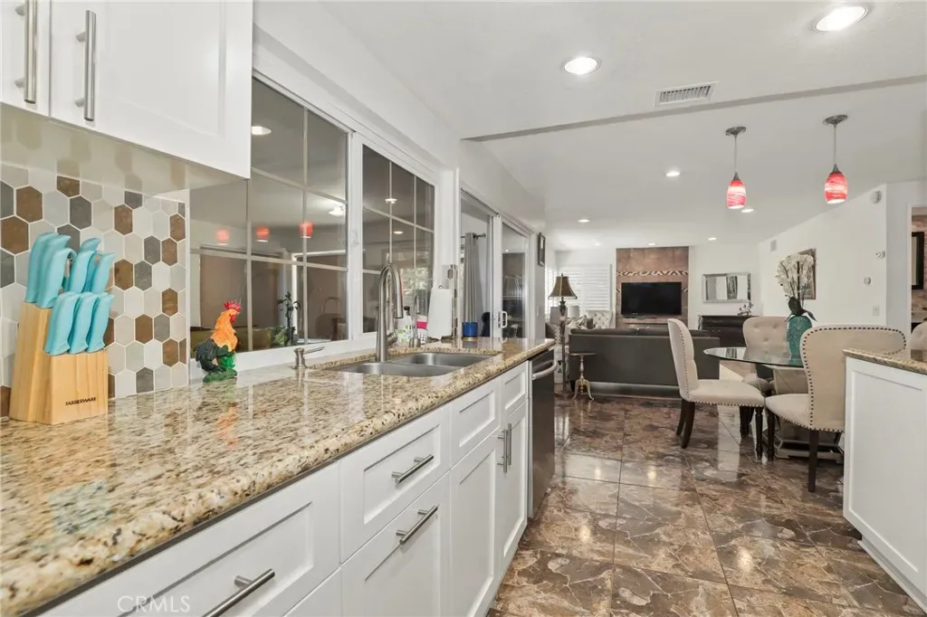 Charming Chatsworth Gem with Vaulted Ceilings & Lush Backyard. Welcome home to this beautiful 3-bedroom, 2.5-bathroom gem nestled in a wonderful Chatsworth neighborhood. Step inside to discover a bright, airy, and inviting floor plan, highlighted by soaring high vaulted ceilings in the living room. The home features easy-to-maintain laminate and tile flooring throughout, a kitchen with beautiful granite countertops, and thoughtfully remodeled bathrooms with modern finishes. The spacious primary suite also boasts high vaulted ceilings, creating an expansive and relaxing retreat. Just off the main living areas, you will find a lovely sunroom—the perfect versatile space to relax, read, or enjoy your morning coffee. From the sunroom, step right out into your own private backyard oasis. This peaceful outdoor space is beautifully landscaped with an abundance of vibrant flowers and mature fruit trees, ready for you to enjoy. Convenience meets sustainability in this home! Enjoy energy-efficient living with installed solar panels to help keep utility costs down, plus a 2-car attached garage with direct access to the interior.